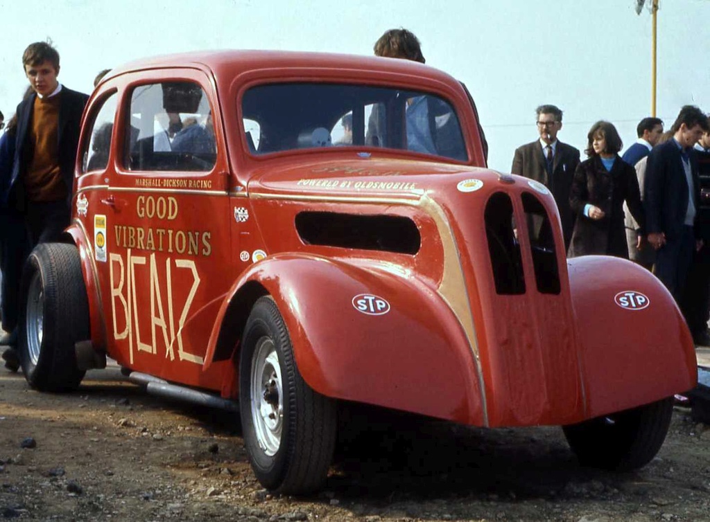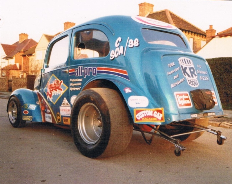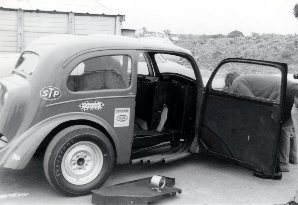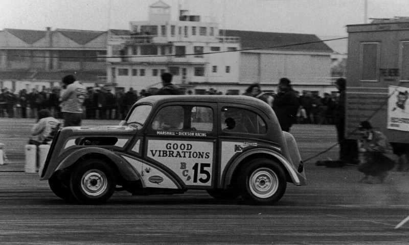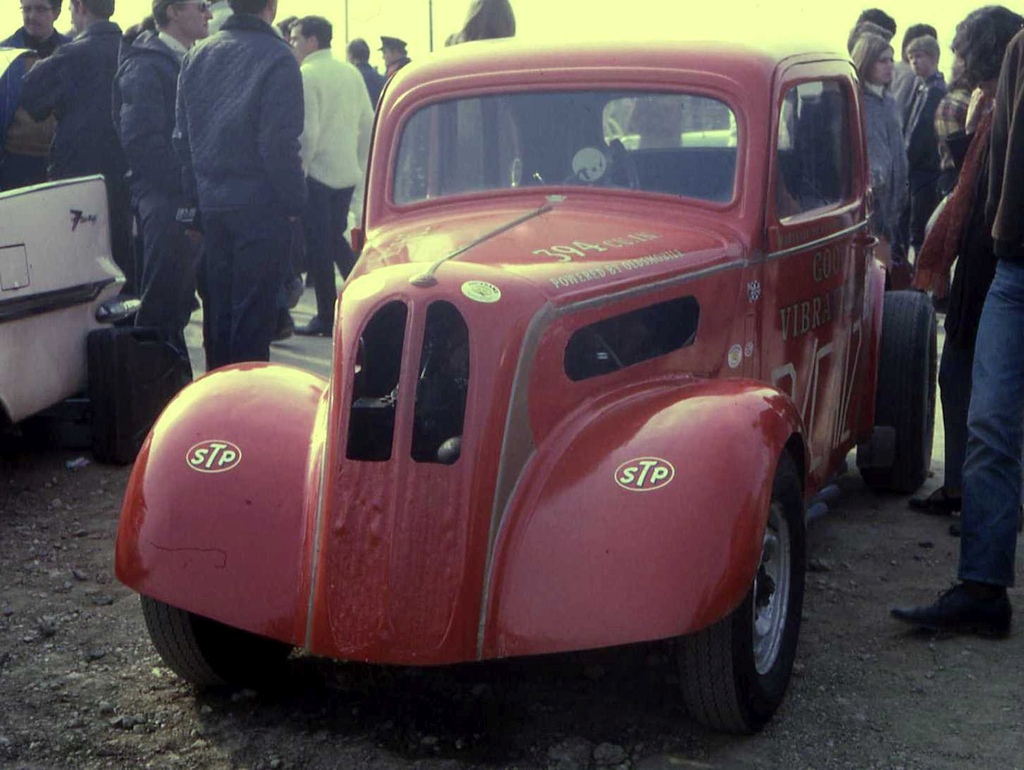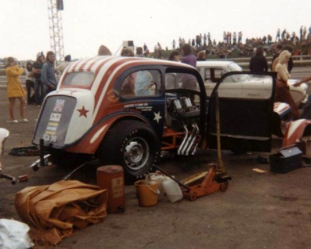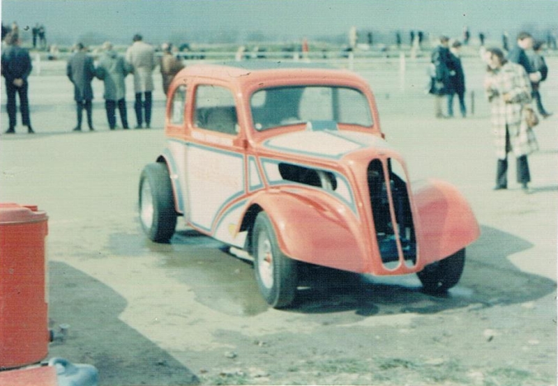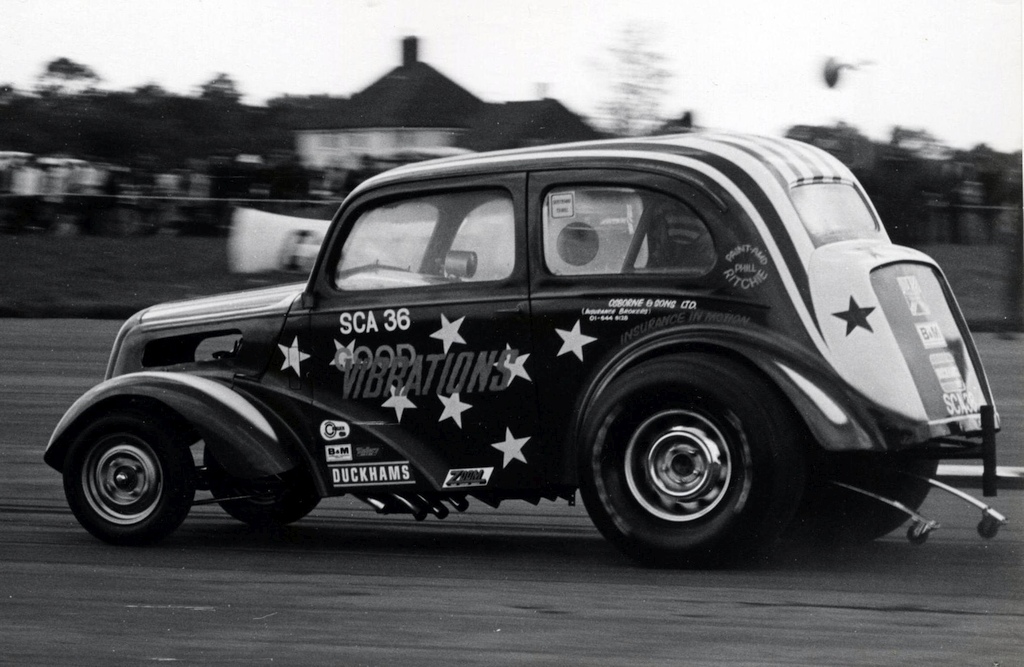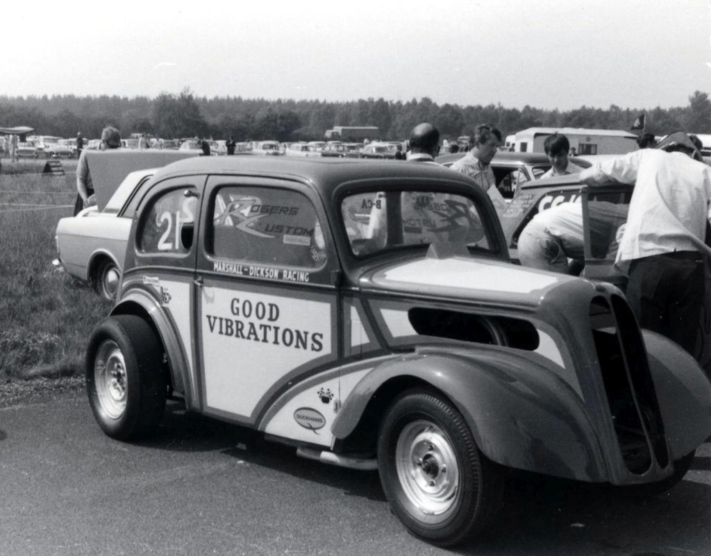 John Dickson: We went to RAF Debden in September 1963 where Mickey Thompson and Dante Duce in Mooneyes ran and it was an RAC event. We went up with a friend and when we got there we found, like a lot of others, that admission was by invitation only and we weren't allowed in. So we blagged our way in like another five thousand did. We were kept miles from the strip and it was earth-shattering stuff. They had both been to the Brighton Speed Trial a short time before. Mickey Thompson had done a deal with the US Air Force to bring the car over but the deal didn't include taking it back so it was left here and it was adapted into Commuter. We went to Blackbushe and after the Pod opened in 1966 we went as spectators including the visit of the American Commando Drag Race Team in 1967. We saw Al Eckstrand's Lawman Anglia and a beautiful Corvette with Lawman on them and EJ Potter's bike. Between 1967 and 1968 we got the idea that we could do this and bought an Anglia for £4. It was a running vehicle when we bought it. Roger Marshall: We sold the engine, gearbox and rear axle for a profit and that was the only time in history we ever did make a profit.