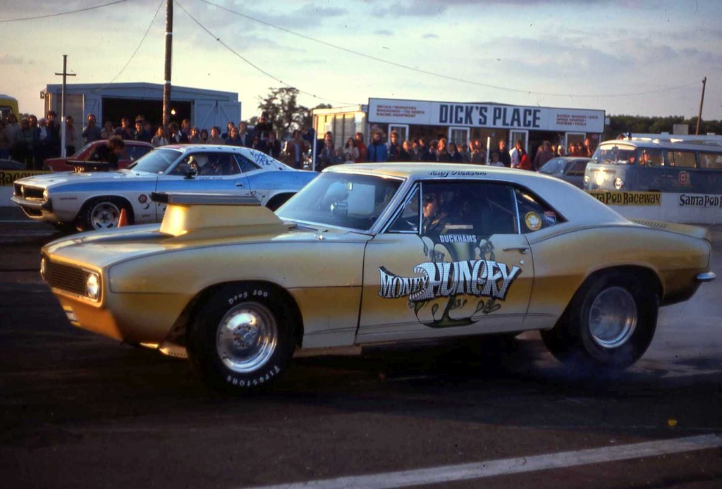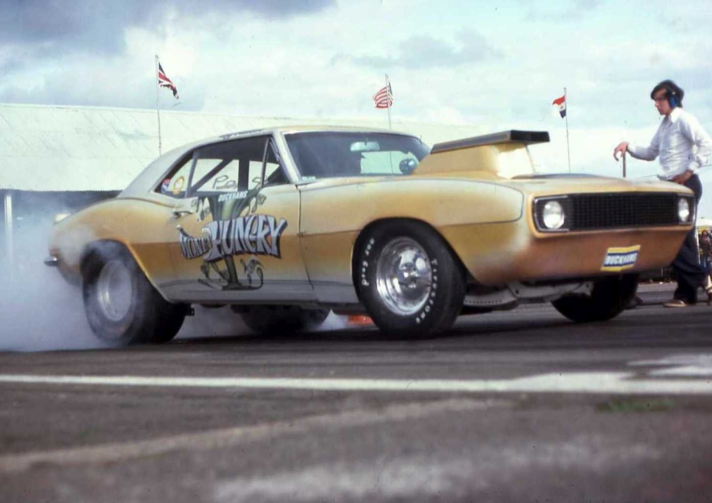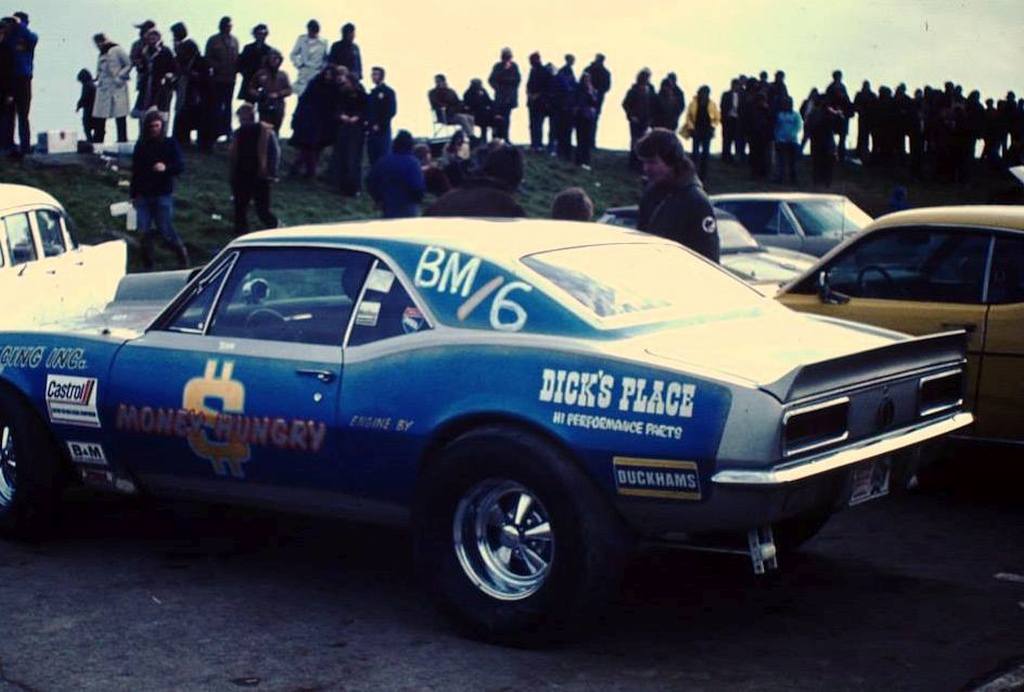 Roger Marshall: We just took the engine out just looked at it and laughed. John Dickson: It was turned into a boat anchor I think. Eurodragster.com: What happened to the chassis and body? John Dickson: They got sold to a racer called Tony Merry who had previously crashed a similar car in 1974. He and Robin Tallis put his engine and gearbox into the chassis of Good Vibrations and the body got repainted. The car was run for the remainder of the 1970s being driven by Tony Merry and was sold to Pete Goddard in 1979. As far as me and Roger racing that was the end of it but Tony went on racing for two or three yrs after that, after Money Hungry was rebuilt. He was NDRC Champion twice running. Gary Goggin was generally a tenth or two quicker but until the two Chrysler Heavies came in he was the quickest and Tony the second. At its best there were about eight cars that were all competitive. It was a good couple of seasons, when they all ran it was right up there with Funny Cars and Top Fuel, very exciting with the burnouts. I think it is fair to say they put on a great show at the time, most of them were running under 10.5 seconds and up to 130 mph. All being well, Gary was a tenth quicker because he had some aluminium heads and better breathing, he had more money than anyone else at that time.