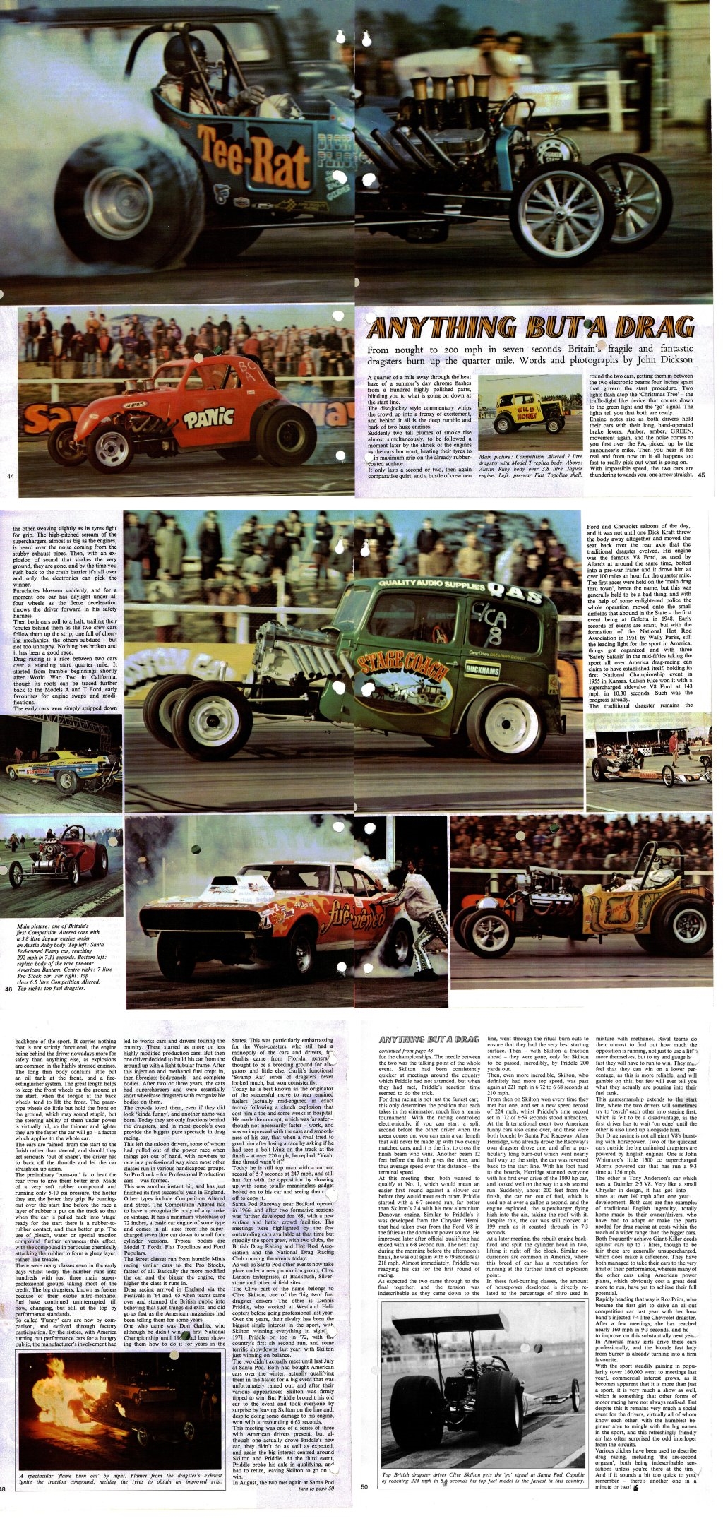 John Dickson: It couldn't have gone on. Tony had a good job and good money and lived at home unmarried and could afford it up to a point. But when all these multifarious expenses came he didn't have that sort of finance and he pulled out. Eurodragster.com: You had also been a drag racing journalist as well during the early 1970s? John Dickson: I was Press Officer of the BDR&HRA and I subsequently took on the job of writing for Custom Car in 1972 and also did regular pieces for Autosport, Auto, Fast Car and Drag Racing News until the end of 1976 season for both BDR&HRA and NDRC race meetings. I sat in the car at the end of a meeting with a typewriter and, then after typing the report, drove it to Fleet Street where Autosport was published to make their deadline. Along with running Good Vibrations, this was my main occupation for two years and the modest income from it was just enough to maintain my bachelor existence at the time. Eurodragster.com: What happened to Tony after you had both quit the sport?