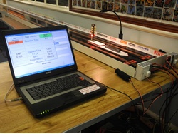 With the eight sections finished, I then came to the conclusion that the shutdown area wasn't long enough and set about producing another two-metre section. I tested the track at a school hall in Chelmsford without any timing system, as I didn't want to go to all the expense of buying the TrackMate system if the track wasn't good enough. Well, to say we were gobsmacked would be an understatement, the track worked really well: so well that we were having trouble stopping the cars! Whilst I was building the track I was putting money away in readiness to buy the timing system. I ordered the system in February 2011 and set about fitting the Christmas tree to a detachable bracket for easy removal. Holes for the eight sensors were drilled through the track and the wiring adapted for my layout. I sourced some DJ's turntable lights to operate the sensors. After finishing the track in February 2011, the first proper race meeting was held at the MrC venue in Kent on 8th May and the track worked very well and proved to be very fast. Eurodragster.com: What is the scale length of the track? Steven Dudley: The track is a 1/24th thousand feet. It is sixty feet long in total and would need to be about another thirteen feet long to make a scale quarter mile. The starting area is twenty inches and the powered section of the track between the start and finish lines is forty two feet. The shutdown area is just under sixteen feet long and really isn't long enough; those in the know recommend at least twenty five feet. I have plans to extend the shutdown area with another two-metre length of polycarbonate when I get a minute!