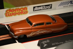 Steven Dudley: Yes you can, and this is how I suggest anybody wanting to try slot drags starts. Parma PSE in the States offer Ready To Run race cars for a very good price. They are available on EBay and from Yours Truly for between £30 and £40, which is what you'd pay for a decent Scalextric car. Buying a turn-key car is not frowned upon at all and lots of the guys at MrD have these cars. Eurodragster.com: What is the motor of choice? Steven Dudley: Motors are the point where this hobby can start to get expensive. There are basically five different motor types. The 16D and Super 16D are based on a D can (housing) and the Group 12 and 20 on a C can. A standard 16D drag race motor will cost approximately £10 and these come standard in RTR cars. A Super 16D can be built for around £25. A Group 12 or Group 20 motor will cost anything from £25 to around £75. Strap / Open / Group 7 / Group 27 motors can cost upwards of £100. The expensive motors will only come into play when you get hooked and want to go faster or if you fancy racing in a European Championship. Eurodragster.com: Which venues do you use? Steven Dudley: The venue in Kent, MrC, is the Sturdee Social Club at Hoo. The Social Club and hall are used by the members of the Medway Rod and Classic Club for their meetings. Food and drink are available. The Cathedral School in Chelmsford will I think will be a temporary venue for the MrD Club until a more suitable hall can be found. The school's hall is not quite long enough, although we do get a good hire rate and it is local for all the MrD and Rebel Rousers Club members. Eurodragster.com: Do you have any sponsors, or is there anyone you would like to thank?