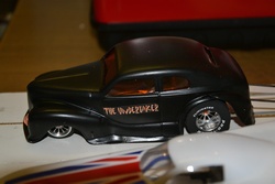Steven Dudley: The timing system is supplied by TrackMate, who I believe are the only company who supply timing systems specifically for slot drag racing. Roundy-round slot car racing systems can be adapted for drag racing but are nowhere near as accurate. The system works on Infra red sensors, which require a light source above them, or you can get guide flag sensors which sit in the slot and work on movement. These are linked to a box of tricks which operates the Tree and feeds the data to the computer. Not being a computer or electronics whizz I'm not too sure how! Eurodragster.com: What are your track records? Steven Dudley: At present the track record for the scale 1000 feet is 57.18 mph and the best recorded ET is 0.702 seconds. Eurodragster.com: What do you need to build a competitive car - how much should you expect to spend? Steven Dudley: A decent chassis from JDS or WRP is a good starting point. These are available in kit form and are soldered together on a jig. There are lots of fantastic replica wheels and tyres available from JDS, ProTrack and Speed Secrets. Body-wise you have a lot of choice. Some people prefer hard bodies which can be adapted from any 1/24th plastic kit, resin, or lexan poly. Motors obviously play a big part in performance along with aerodynamics. To build a competitive car for bracket or RWYB you're probably looking at £50. If anybody is interested then give me a shout and Ill be more than willing to help out.