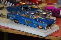Steven Dudley: At the MrC events in Kent we usually have around twenty to twenty five people. The MrD club in Chelmsford is obviously in its infancy at the moment, although saying that attendance has been in the twenties for both events so far, which I'm pleased with. At present we do not run any formal classes or hold official type race meetings, we run on a Run What You Brung basis. I do hold a couple of sixteen-car eliminators during the evening and we try to match our cars to our opponent. Most racers have at least four cars, my son Matt and I have thirty between us. Matt and I, along with my friend Paul and his son Ryan, do go to race in Europe where there are around eight classes based on the motor type. The full European construction and racing rules will be appearing on our web site soon. In Europe, qualifying is completed by having one run in both lanes with the quickest ET counting. A conventional drag racing sixteen- or thirty-two car ladder is then used. For bracket racing we use the reaction time to set qualifying, with the best being number one qualifier and so on. In Europe for Bracket, Pure Stock and Super 16D a Sportsman Tree is used. For Group 12, Group 20, Top Fuel, MM/PS and Open/Strap a Pro tree is used. For racing at MrD events we use a Sportsman Tree. Eurodragster.com: Do you hold a formal Championship? Steven Dudley: In 2010, we held a UK Championship at Haynes Motor Museum, during a model and slot car festival. Unfortunately the meeting clashed with several other
