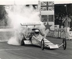 Click on any picture below for a large version Easter 2006 is the thirtieth anniversary of the 1976 Spring Nationals. The meeting was SPR's biggest attendance up to that point, with a reported 50,000 during the weekend. The highlight of the meeting was the eight-car Top Fuel Dragster elimination, during which Peter Crane beat the reigning NHRA Top Fuel champion Don Garlits and in the process ran the first five-second time outside the USA. To mark the anniversary, Eurodragster.com spoke to Peter Crane at his home in East Sussex. Eurodragster.com: What did you do for speed in the early days? Peter Crane: I was involved with bikes initially. I had a street Triumph 500 that I ran in sprint events and teamed up with Bill Bragg who ran sprint bikes named Yellow Peril and Silver Peril. We raced these machines at Duxford and Ramsgate in the early 1960s. Yellow Peril actually turned up in 2005 in Slough and it has now been restored. Bill helped me install Dell'Orto carbs on my Triumph, but as the manifold he came up with fouled the distributor, I had to rework the distributor. This knowledge came in useful later. Bill used to run his bikes on nitro, which I think was banned, and once had a fearsome blow-up with Bill aboard. He wore extra protection after that. There is a photo of it on the Acceleration Archive (Readers Gallery 14). Eurodragster.com: What was your first experience of drag racing? Eurodragster.com: When did you return to England and first get involved at Santa Pod? Peter Crane: I returned at the end of 1965 for family reasons. I ran at Santa Pod in 1966 in a supercharged Ford Cortina. At this stage I was working for Alan Allard in Putney and was looking to open my own business along similar lines. However when I saw my solicitor he said he was winding up a Lucas wholesaling business in Bromley, which I ended up buying and working in for some considerable time. Coincidentally, this was just around the corner from Fibreglass Repairs. Eurodragster.com: How did you acquire the constituents of what became Devon Cream? Peter Crane: The donor car was a Pontiac Firebird that I acquired through Ronnie Picardo whom I have kept in touch with over the years. I also acquired the 1948 Austin A40 two-door, which was the body and chassis and then sold the project to Cliff Jones. I ran out of time to finish the project off as I got involved with wholesaling AA Touring Kits, which were for hire for overseas touring holidays. Only last week I visited a Len Beech who bought my Austin A40 from Cliff Jones over thirty years ago. I traced the car via the Rod clubs on the net. Len has owned it all that time, has put many miles on it and has won loads of trophies with it. He is shortly going to restore it back to show condition. I cannot tell you how weird this is - first Yellow Peril and now the A40! Eurodragster.com: ...And Eazy Ridin'? It broke almost everything in it. We ran it in 1973 and early 1974 to a best of 10.6. However, the advent of the Boston and Brooklyn Heavy cars with their state-of-the-art specs and Lenco transmission made all the other cars in the class uncompetitive and we wanted to be competitive so I sold it. Eurodragster.com: What happened to it? Peter Crane: I sold Eazy Ridin' to a racer called Mustapha Errol. He still owes me the money for it! It became more of a show car than a race car. I don't know what's become of him or the car. Eurodragster.com: How did you get involved with Fuel cars? Peter Crane: I had an offer from Bob and Roy Phelps to move up to Top Fuel. The deal was that I bought the car and they supplied the motor. They sourced a car through Ed Pink from Cannon & Soares, which was repainted and renamed Stormbringer for its début after it was imported, with an Ed Pink motor on board and direct drive. After buying the car, I drove Firefly to obtain a competition licence. It was a nightmare to drive, just didn't want to go straight and was always pulling to the left. Worse still, I couldn't see where I was going because of the height of the injector hat. How could Bootsie drive the car with confidence when he was shorter than me? I got my license despite the experience with Firefly. It's just as well we bought Stormbringer before Firefly, otherwise I might not have gone ahead with it. In the event, Firefly and Stormbringer were like chalk and cheese - Stormbringer was like driving a Rolls Royce. I'm still in touch with Brent Cannon and he still runs a Methanol Dragster in the US. Eurodragster.com: How did Stormbringer do on its début? Peter Crane: The car's best in the US had been a 6.21. On its début at Santa Pod in late 1974, I ran a 6.20 off the trailer, although I must admit this was after rolling through the lights, and so the time was not representative. Roy Phelps then decided to adjust the clutch, which unfortunately resulted in the car running slower during much of 1975, although we did improve to a 6.18 at the Whitsun Big Go meeting. After we imported Stormbringer, Roy Phelps built a number of other cars based on its design over the next few years. These were Asphalt Alleygator (Allan Herridge), Highway Patrol (Ronnie Picardo), Maneater (Roz Prior) and the Blonde Bombshell. Bob and Roy Phelps put a lot of money into the cars and teams to develop the top echelons of the sport. Eurodragster.com: What of the safety of the car? Peter Crane: I believe safety is paramount and careful preparation vital. I always packed my chute, fitted the wheels to the car and installed the shut-off mechanism. It's also important to get the right signals from the crew, say if anything goes wrong with the chute mounting during the burnout. Even when I had the car over on two wheels once, I never lost control. Eurodragster.com: Did you feel destined to run the first five? Eurodragster.com: How proud are you of the five-second pass? Peter Crane: Easter 1976 was a really big meeting, and there were eight Top Fuel Dragsters qualified. That didn't happen again for a long, long time (Twe