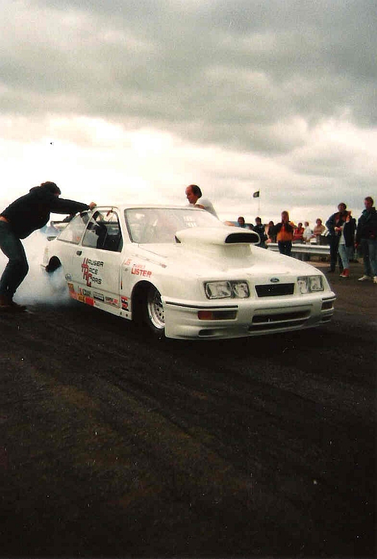 The event was the debut for Dave Warne's Cosworth Sierra and Tim Cook's awesome chopped '56 Chevy. In qualifying Dave Mingay ran a 8.91 off the trailer.