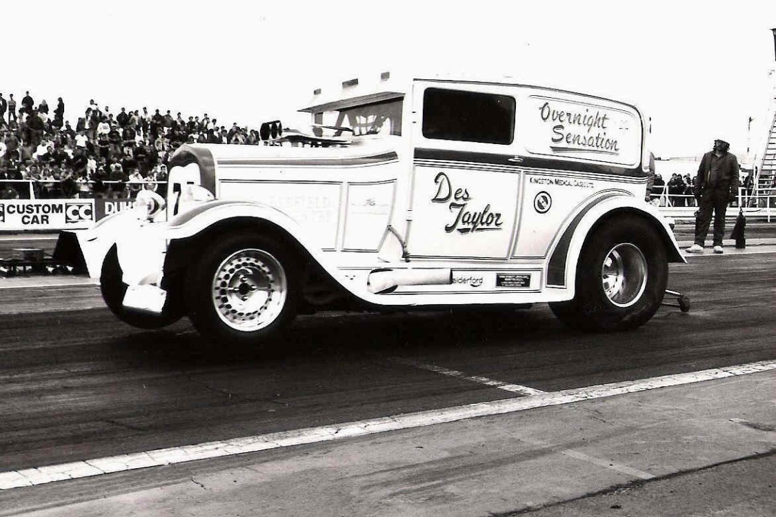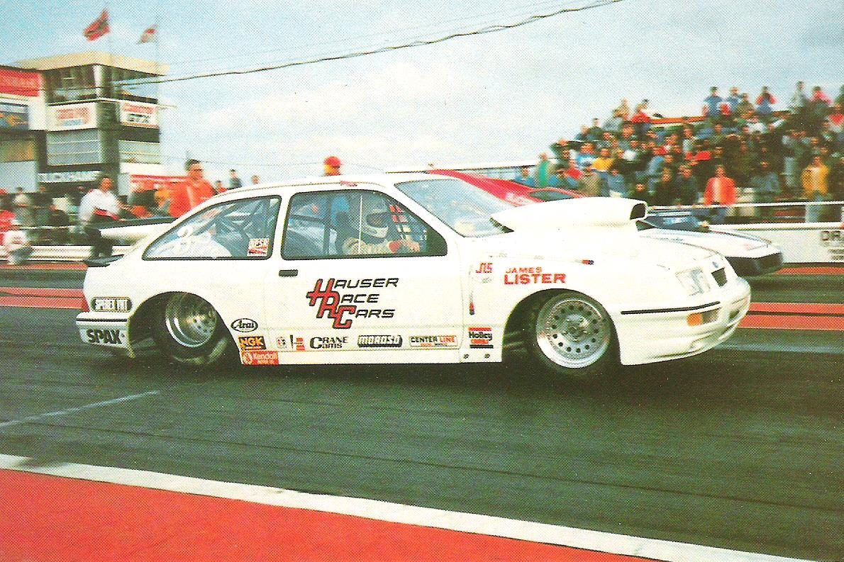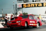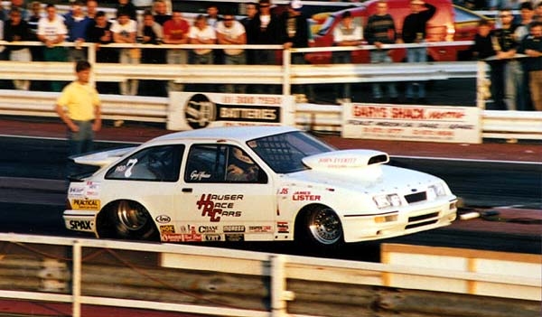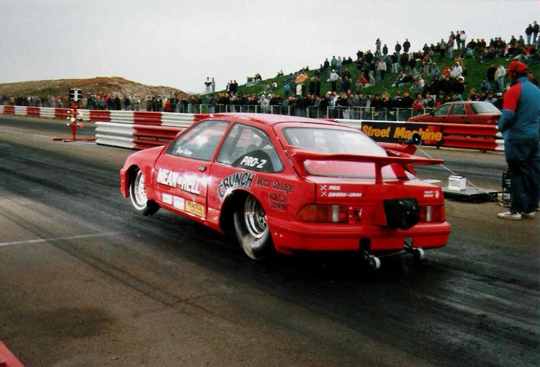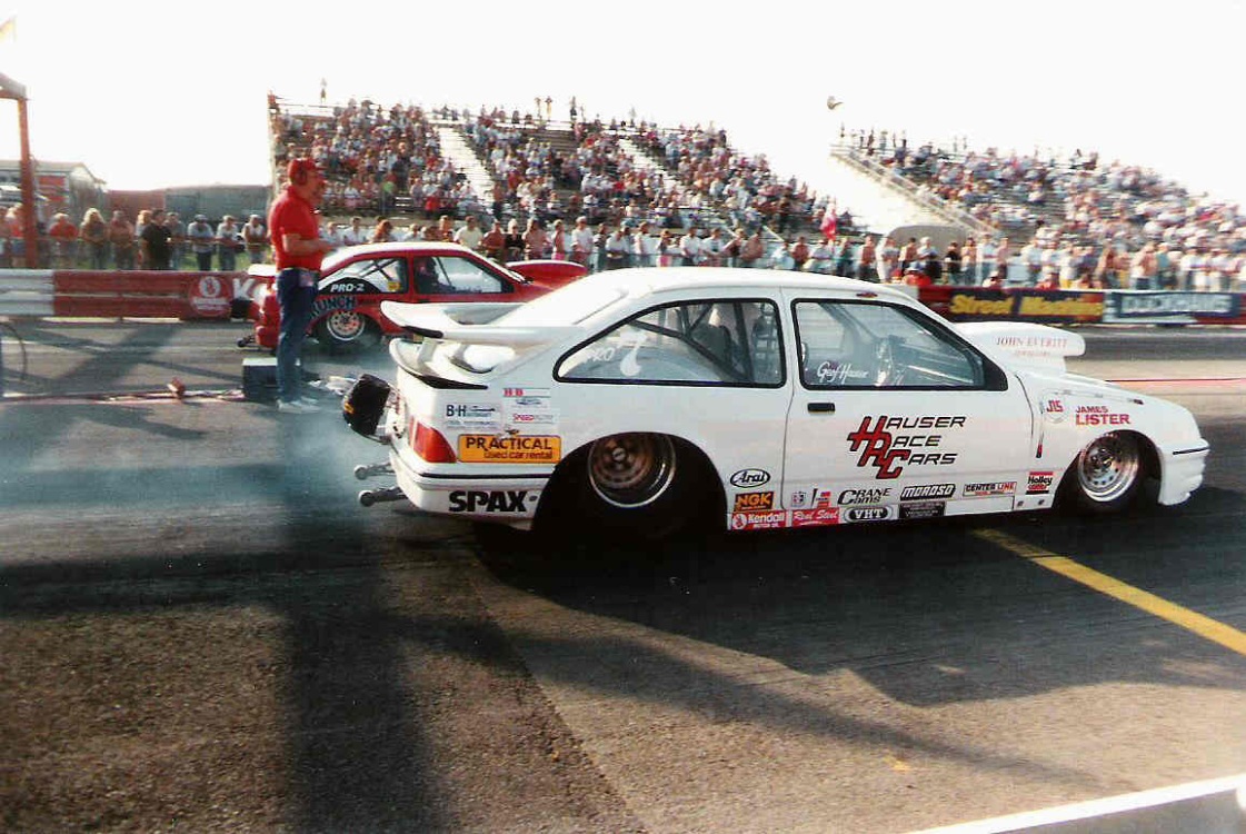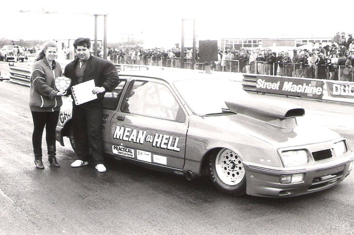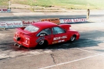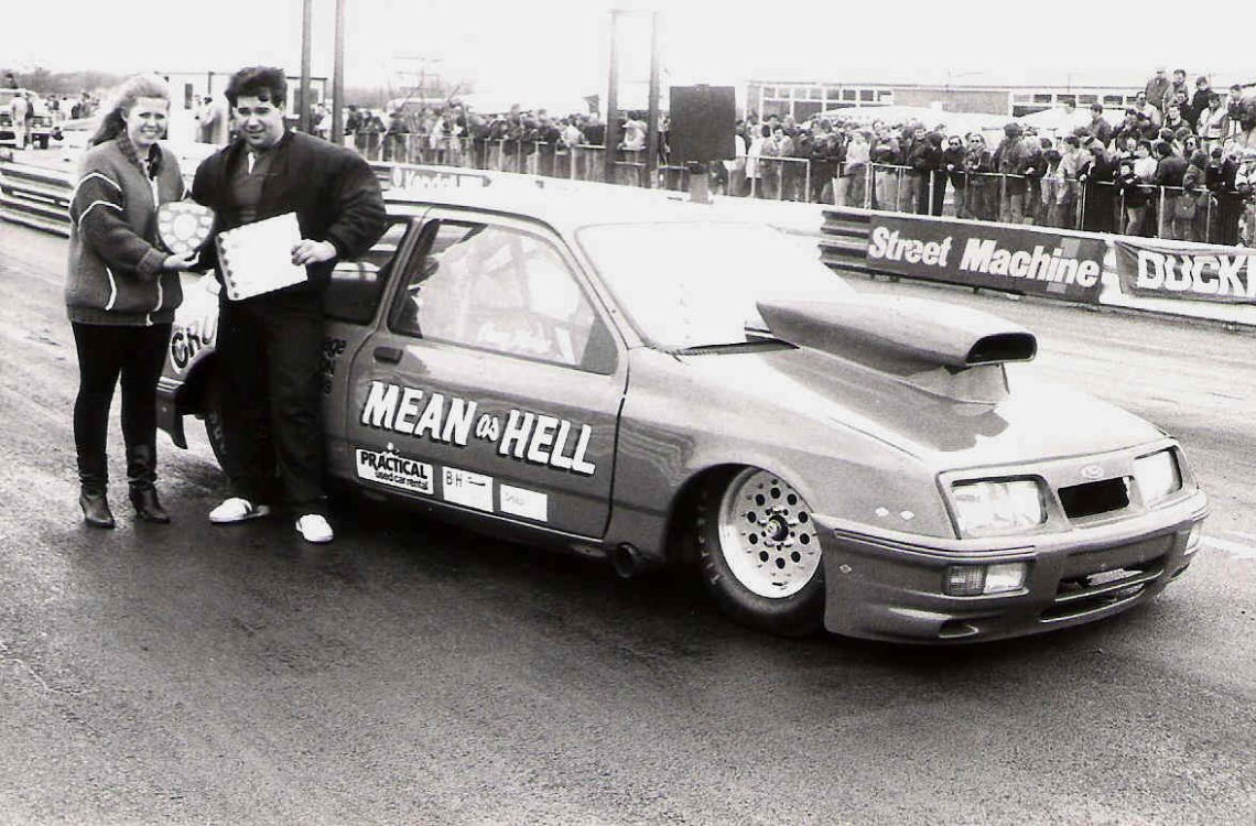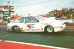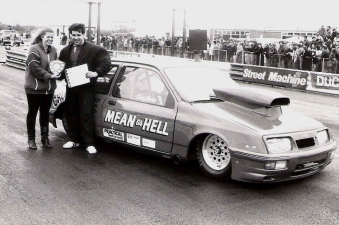 Geoff Hauser broke into the seven second barrier for Pro Mod cars in his Ford Sierra Cosworth. He ran an amazing string of passes, 7.84 in qualifying, then 7.85, 7.87 and then 7.88 in the final. Drag Racing News' front cover gave the record breaking success a red-top headline. Geof's achievement was even more impressive as a was running without nitrous and also with a relatively small 500ci engine.