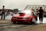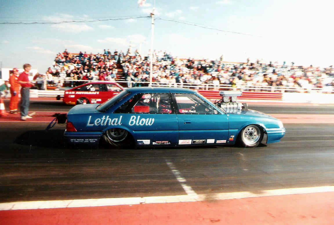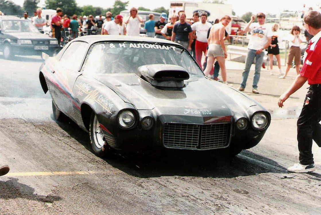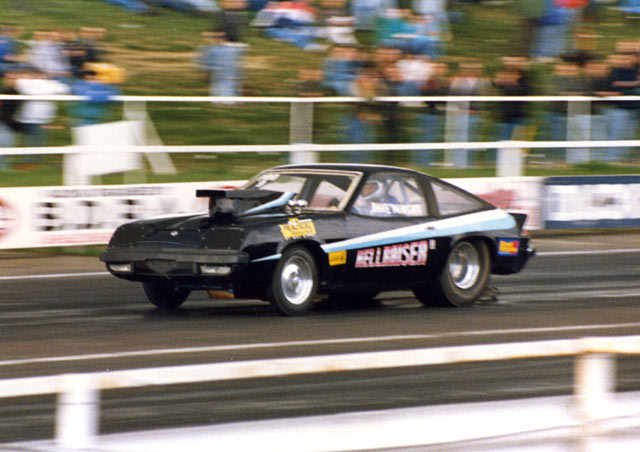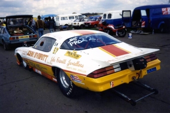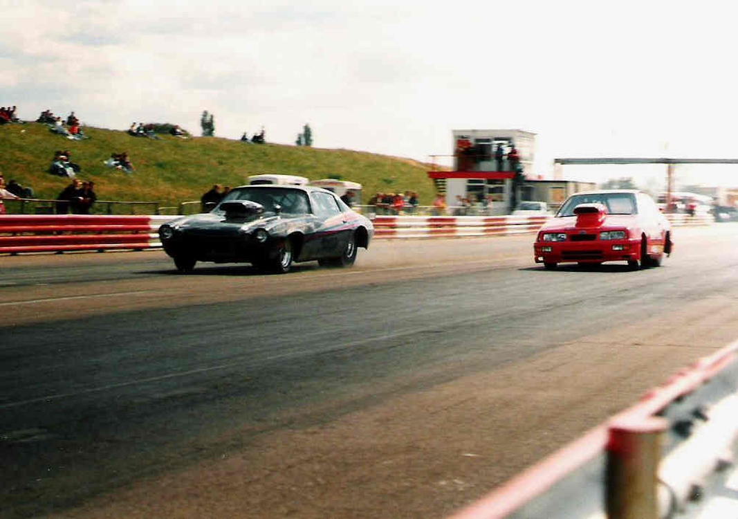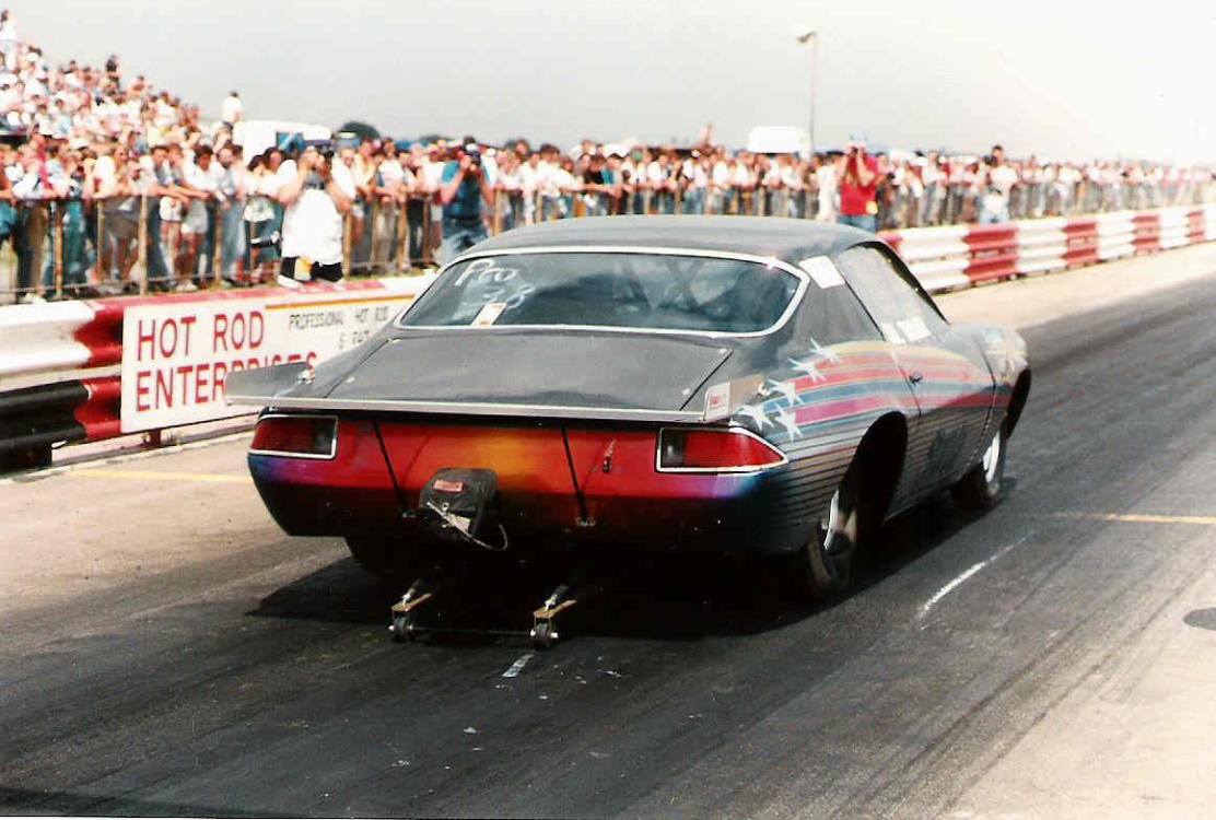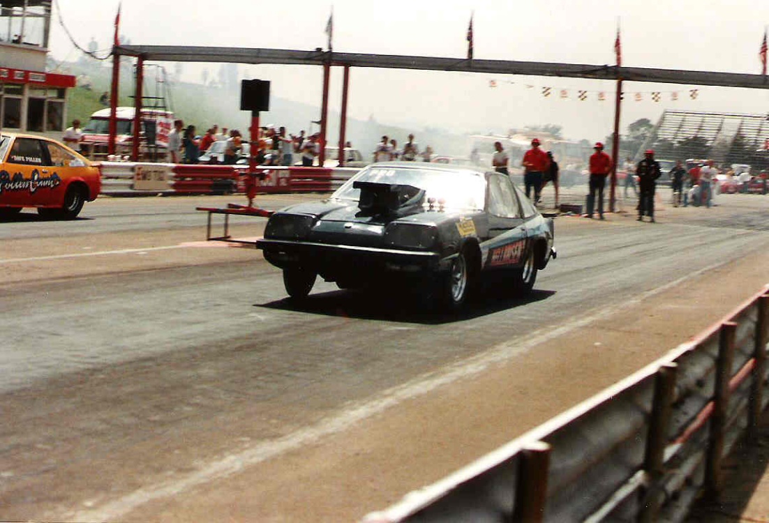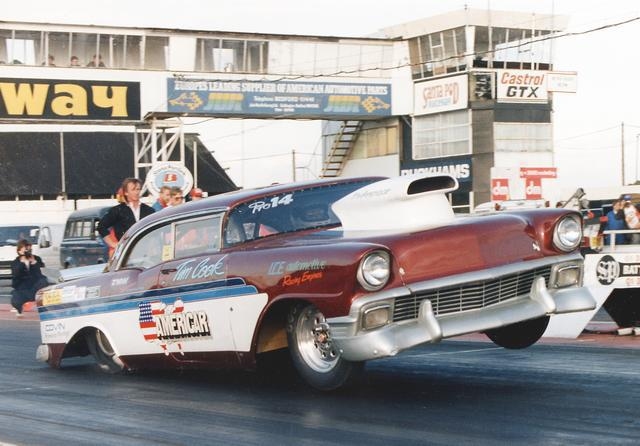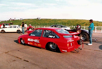 Running Doorslammers heads up and unlimited was, strangely a concept that hadn't yet caught on elsewhere in the world. In the US, nitro racing and Pro Comp were dominant in the US with Pro Stock being the top doorslammer class but non-existent in the UK and anyway more limited in its rules than UK Modified and Super Gas. IHRA had Top Sportsman, which was a dial-in class with a wide variety of machinery incorporating dragsters, altered and doorslammers. It wasn't until 1988 that the IHRA started running Quick Eight doorslammer eliminators which were a sub-group of the Top Sportsman entry. This group of racers became IHRA Pro Modified only at the start of 1990.