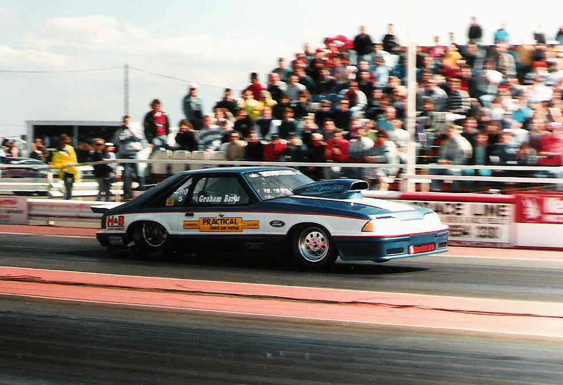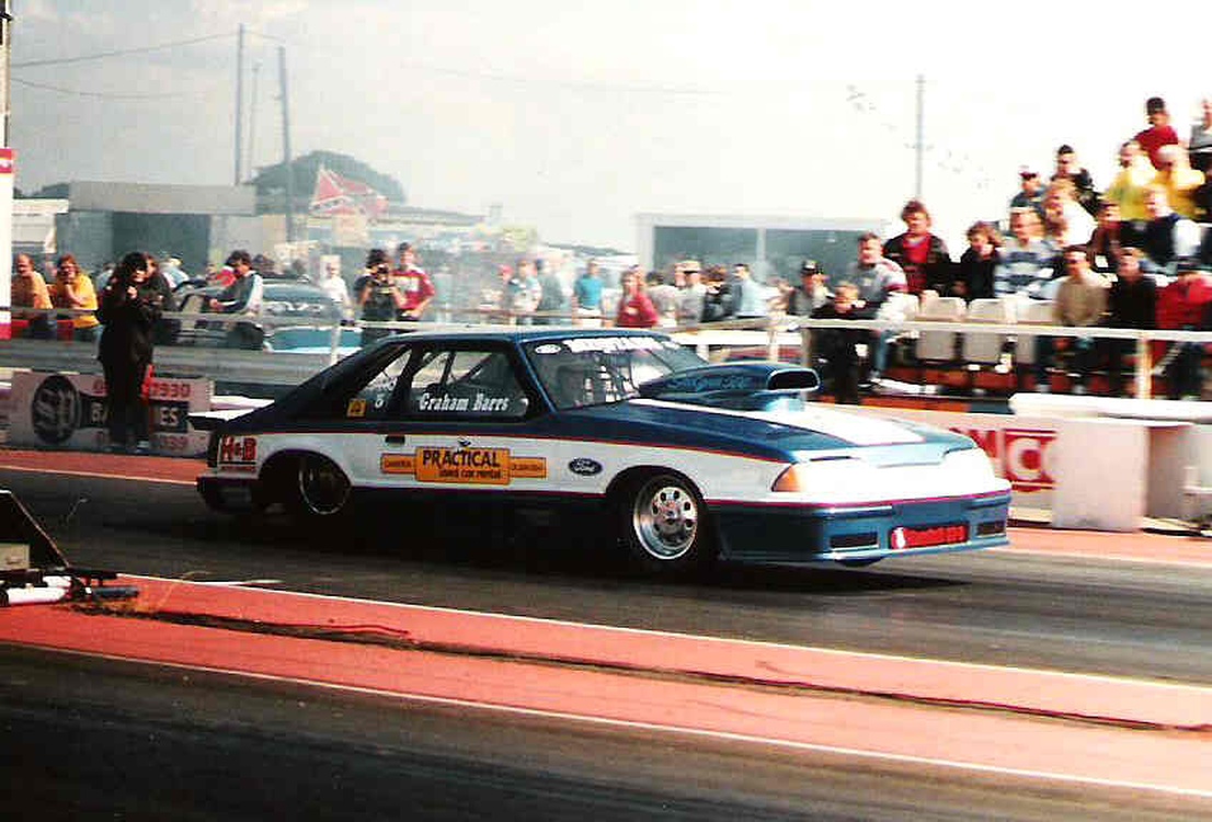 There was a new car for Graham Barrs, who had imported a Fox body Mustang, formerly run to a NHRA A/Gas National Record by Jim van Cleve, Graham fitting his own 351ci combo into the rolling chassis.