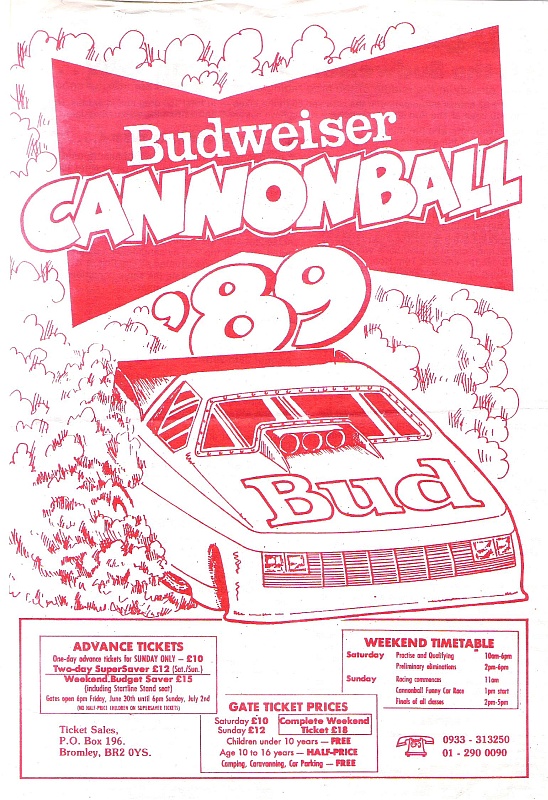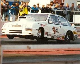 This event suffered bad weather which led to a washout on Sunday and one-shot qualifying on Monday. Thirteen cars were on the entry list, and the event was the debut of Graham Barrs' Mustang which ran an impressive 9.36/149 on its initial pass, later running 9.00/152 in qualifying. Geof Hauser had upgraded his engine to a 500ci Chrysler B-1 unit. The event was also the debut for Bert Englefield's Sierra XR4i.