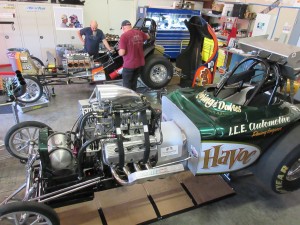 Burnouts complete it was down to business. With Nanooks pre run adjustments done, I flicked on our Racepak and Rick Hough and I left them to it. Within a few seconds, Vince Generalao turned on the second light and Nick followed him in. After the starter flipped the switch you couldn't separate the cars until the 'chutes deployed at the end of the track. The numbers came up in Nanooks lane first, 6.446 at 224, our side showed 6.449 at 228, aaah' well. Scotty insisted we'd won, I told him that he was dehydrated. At the end of the track, Nick asked who won and I told him it was Vince. It wasn't too tough, it was a great race. Back in the pits the truth emerged and once again, Scotty's eyesight had proved to be better than mine. The five inch diameter 40 watt win light that was perched on top of the light board some quarter mile away had escaped my vision, Nick had scored us a few feet at the startline and we had indeed won our Saturday afternoon race with Nanook. The round was largely business as usual but with one notable exception. At an adjusted altitude close to 4,000 feet, Randy Bradford had chopped the throttle early and still carded a 6.29. To be fair, Randy and the team had been quick all weekend and if you're looking for 2018 March Meet tip, best you get in now. Our final run of the weekend was to be another lap with our team mates. After lengthy negotiations it was agreed that the losers would buy dinner. The Rat Trap car was as strong as we'd seen it, the 6.37 on Saturday night was way quicker than we'd been. Nick, Scotty and I had a chat and agreed that as we had Sunday to service the car, we'd knock a couple of teeth off the top pulley and try and score a lobster dinner. Brian was serious and as ever, Ron was laughing like a five year old. Unfortunately, the race proved something of an anti climax. Mid way through the burnout our trusty Donovan quit. It wasn't going to be expensive, the expensive ones have a distinct sound, it was electrical, but it still meant 'Goodnight Vienna'. To his credit, Scotty went for the starter but soon realised that we were done. Rat Trap finished up the weekend with a very respectable mid six and I asked Brian which McDonalds he fancied. During the day, as competitors were eliminated, the pits at Bowling Green had begun to thin out and by the time our Fuel Altered show had concluded it was close to empty. As we were packing up I noticed that the Hough family were busy servicing their Hemi. Impressed with their enthusiasm, I wandered over with some ice cream. Dave had arranged to leave the truck and trailer in the gated compound at Rat Trap HQ. "We're just making sure it's in good shape. We'll fly back Tuesday, it doesn't make much sense to drag it home." During his fifty something years racing the iconic Nanook, the basic economics of racing a blue chip Fuel Altered haven't been wasted on Dave Hough. Around 7.00pm, the mile wide grin that was Randy Bradford wandered into our pit and said his goodbyes. The team had arrived with a new fuel system and a desire for progress; the short numbers on the 6.29 were a clear indication of success. Brian declined my suggestion of McDonalds and we ended up at a Barbeque restaurant. Ribs were the order of the day and we were finally allowed to buy everyone dinner. It was a great finish to an even better weekend. Sunday traffic allowed us a pain free drive back to Tennessee and we had the car unloaded by 11.00am. With the collective experience of the Hope team and Dave Hough on hand it took about five minutes to track down a damaged coil. With a replacement fitted in a more suitable location, we fired the engine for a few seconds and then set about draining the oil and fuel. The few hours we had left on Sunday afternoon were put to good use and when we switched off the lights at Rat Trap HQ, the car was just about ready for our first lap at Michigan.