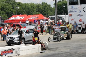 We arrived at the track mid morning. We weren't due to run until Friday but there were still a few jobs to do. With the awnings set up we unloaded the Bantam and went to work. Our International SFI chassis tag lapsed in June so we took the opportunity to get an NHRA version. After some detail work on the engine, we cleared tech, Nick mixed up our first batch of fuel and we were done. The technical challenge for us was going to be the weather. We can manipulate almost anything on the car but we can't control the air quality. In broad terms, we base the engines power potential by looking at the 'adjusted altitude'. Obviously the track elevation doesn't change but as the local weather conditions vary, the car thinks it's in a lift. From a performance perspective, as the adjusted altitude goes up, the horsepower goes down. Beyond a certain point, during an ascent, mountaineers often need oxygen, our car has the same problem. To a certain extent we can resolve this issue with engine set up but the general trend is always down. The only tune up data we have for the Bantam is valid between 1,650 and 2,375 feet. The adjusted altitude at Bowling Green stayed between 3,300 and 3,875 feet.
