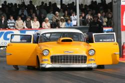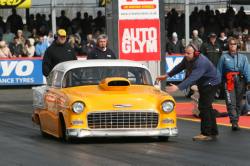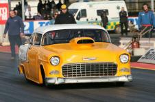 UK Super Modified racer Rob Smallworth is one of a small but select number of racers who have built their own car, in Rob's case a beautiful 1955 Chevy which took him six years during which time he crewed with a number of other racers. The Chevy made a brief appearance in Super Pro ET before quickly becoming a contender in the then-new Super Modified class. We spoke to Rob in March 2007, the week before the Auto Trader Easter Thunderball at Santa Pod Raceway and the day before he was due to take Eurodragster.com News Editor Tog for a passenger ride for the 2007 Super Modified DVD. Click on any picture below for large version. Pictures courtesy and ©Peter Donaldson Eurodragster.com: How did you discover drag racing? Rob Smallworth: When I was in my last year at school, my mate Steve and I used to stay at his nan's for weekends. One weekend we went to Blackbushe and saw racers and I saw drag racing for the first time. A few years later, my cousin Barry turned up in a Chevy Impala and we used to go to Hot Rod Runs and Chelsea Cruise...the seed was sown! Eurodragster.com: What was your first experience of driving down the strip?