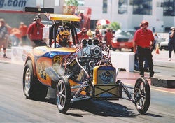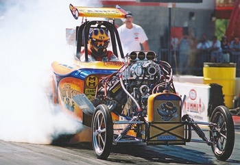 Ron Hope: Yes, Brian has recently obtained his Alcohol Funny Car licence at Frank Hawley School in Florida. Brian serves currently as Crew Chief on the Rat Trap, however he is slated to get a crossover licence in a Fuel Altered and at Santa Pod will be driving the Pure Hell car. So I will be racing against my son at that event. I'm not aware of any time in drag-race history when two Fuel Altereds have been pitted against each other with father in one and son in the other. It's sure to be a great event for the fans. Eurodragster.com: What's this about fire burnouts? Ron Hope: Fire burnouts are a very spectacular part of drag race history.They are even more spectacular with Fuel Altereds. You just never know when one might pop up.