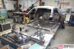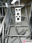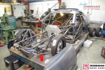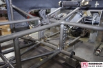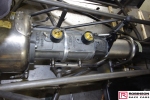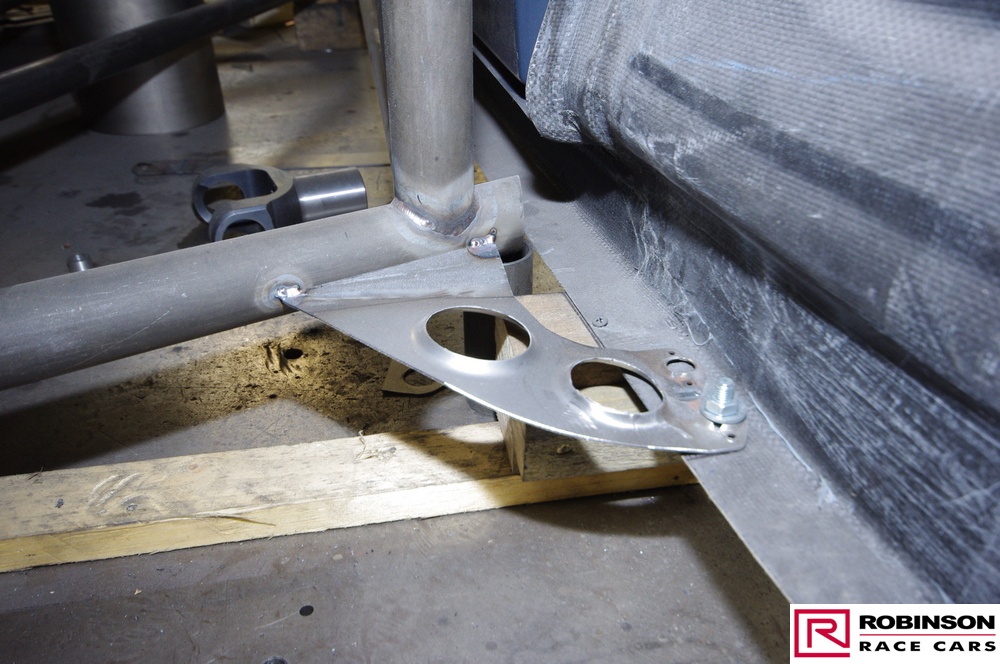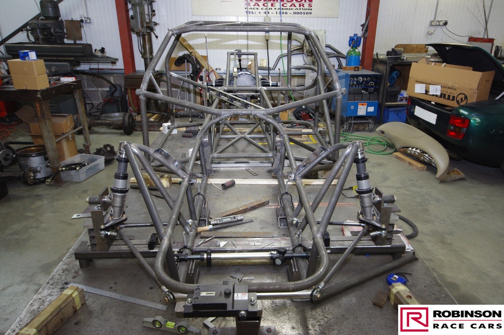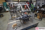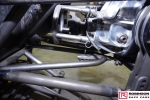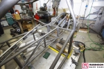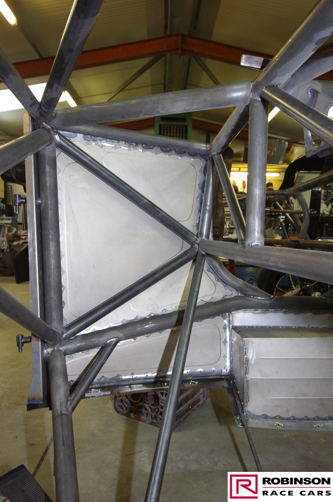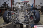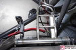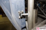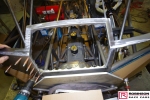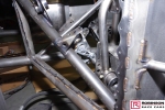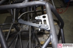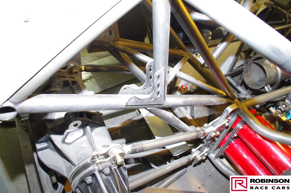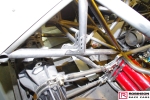 The chassis is based on conventional twin rails. Normally there would be vertical tubes between the rails and diagonals between those verticals to give a triangulated structure. In this chassis the diagonals have been replaced shear plates which give added stiffness without a weight penalty. See pic 35. The Camaro was one of the first chassis to feature the RRC developed double adjustable four-link plates which give a very wide range of potential adjustment. Pics 18 and 99.