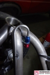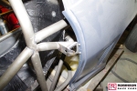 The top mounts for the front struts also feature an RRC special in offering ride height adjustment which is not based on moving the spring mount. Pic 29. Most of the pictures here belong to RRC although I’ve included the Cynergy promotional graphic which is uncannily close to the orange version of the car, a shot by Julian Hunt showing Andy trying to remove his own advert from the track (see pic 122) and a top end picture by Matt Woods for no other reason than I like chute shots.