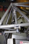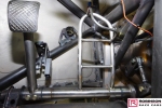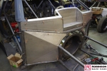 Carbon fibre was used extensively throughout the car to the point where RRC built an oven so more could be done in-house and indeed offered for sale. Wheel tubs, door panels, floor, closing panels at the rear and door bar in fills were all made in-house. See pics 65, 72, 73, 75, 77, 78, 79 and 80. Another route to lightness was the use of titanium most obviously in the firewall but also in the prop shaft tunnel and chute mounts. The challenge of how to attach titanium sheet to chrome moly chassis was solved by TIG brazing some thin sheet steel to the chassis then trimming it to the minimum which allowed for solid rivets to hold the titanium. Pics 54, 55, 84 and 104.