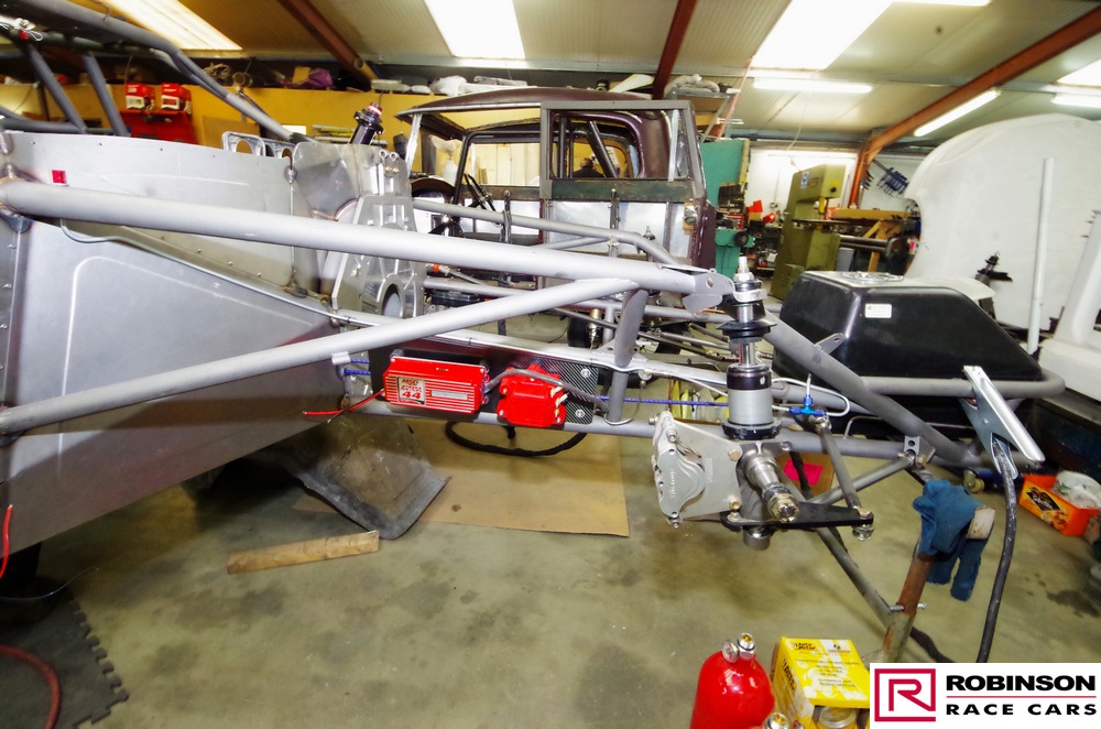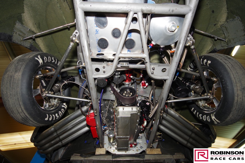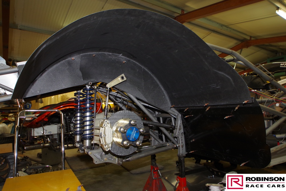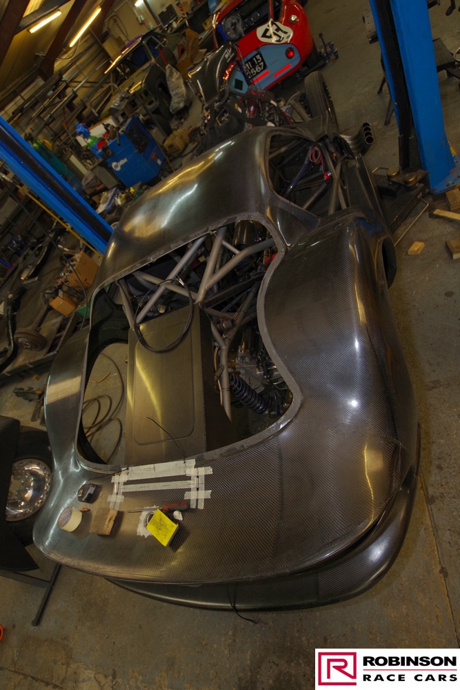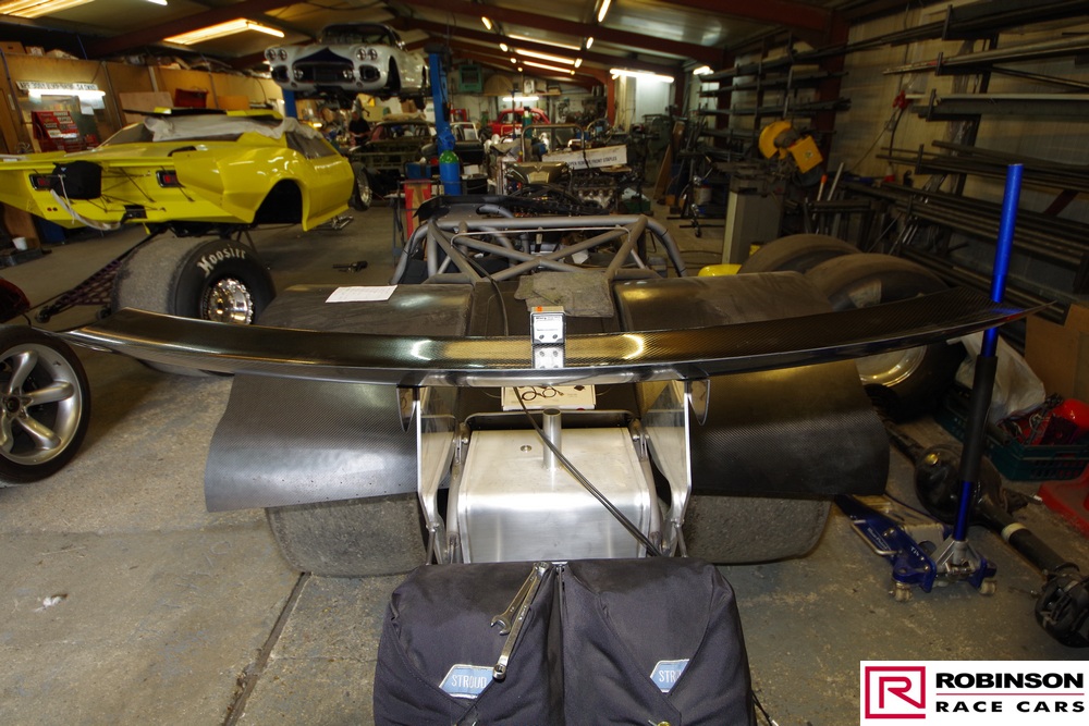 'This included making provision for a blown methanol engine and mounting a Mark Williams axle to handle the increased power. These upgrades meant there were many changes to both body and chassis as you can see in the pictures. The original body was modified with higher wheel humps and a new mould taken from it so a new carbon body could be made'.