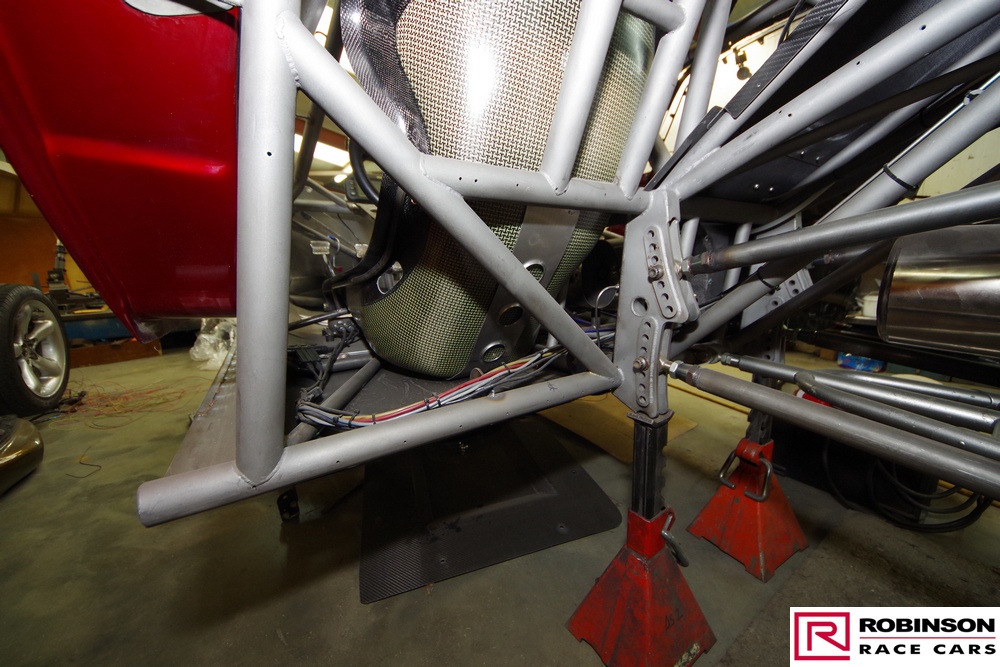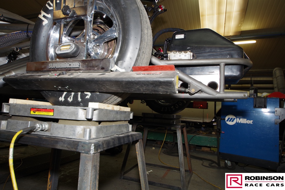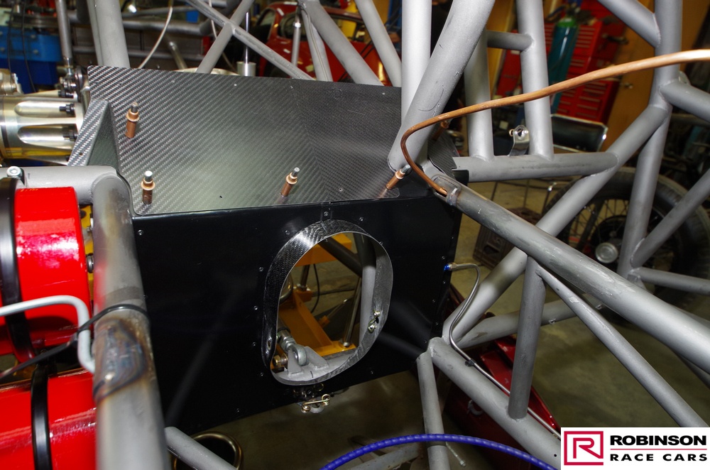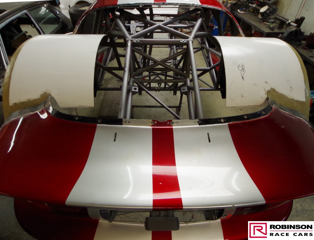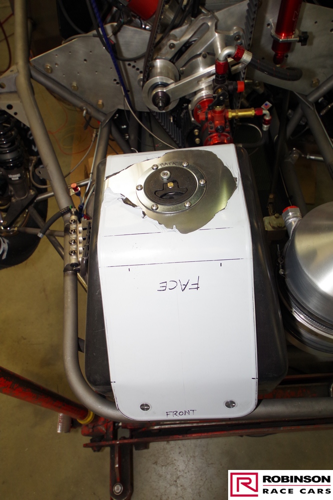 'This included making provision for a blown methanol engine and mounting a Mark Williams axle to handle the increased power. These upgrades meant there were many changes to both body and chassis as you can see in the pictures. The original body was modified with higher wheel humps and a new mould taken from it so a new carbon body could be made'.