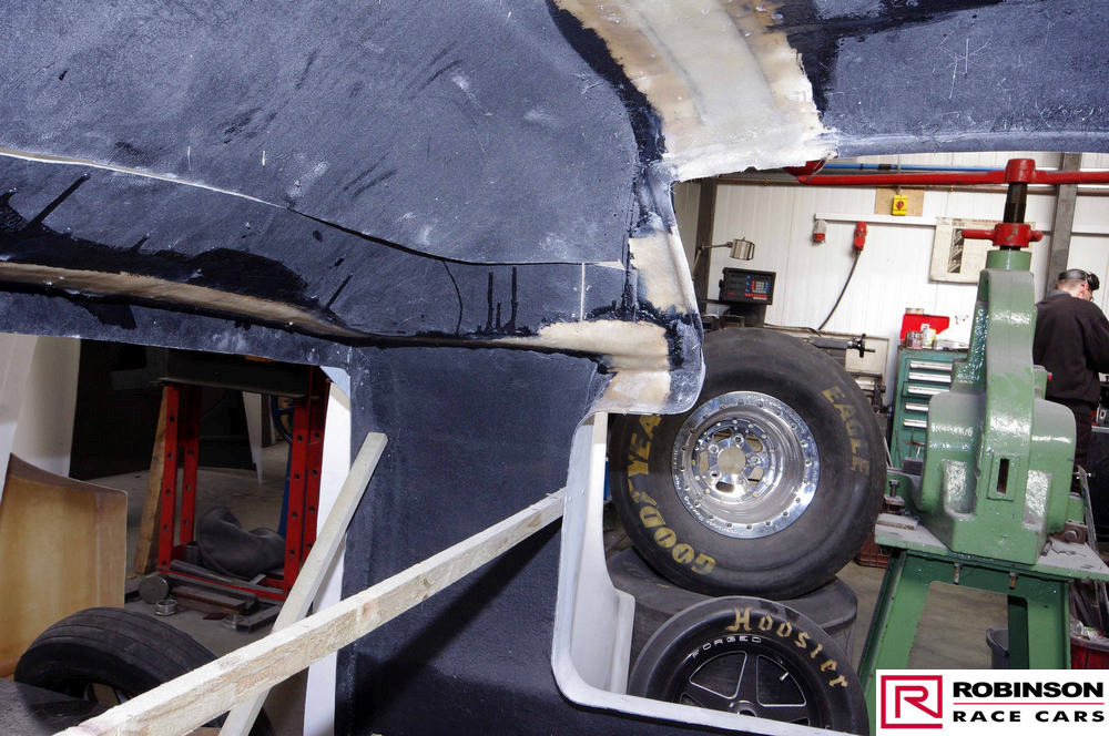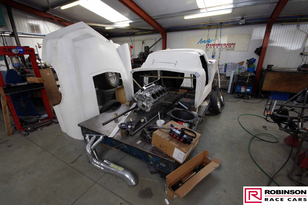 Bob Roberts has kindly sent a gallery of pictures taken by him whilst the build of Kev Slyfield's Pro Modified 1956 Ford Thunderbird took place at Eurodragster.com sponsor Robinson Race Cars.