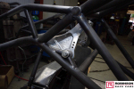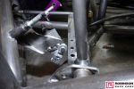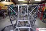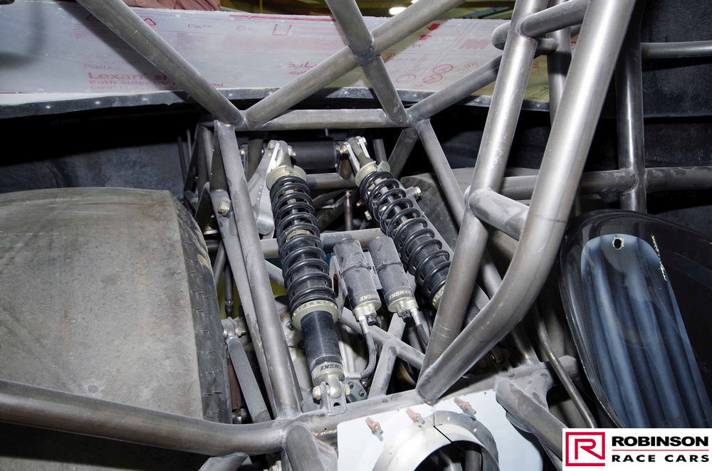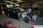 The body in this case came from Suncoast with many small mods to suit its purpose as a Pro Mod. This chassis was one of the first fitted with the RRC double adjustable four-link brackets on the chassis. As originally built it had a sheet metal fabricated axle case which was later replaced as the engine began to make more power.