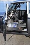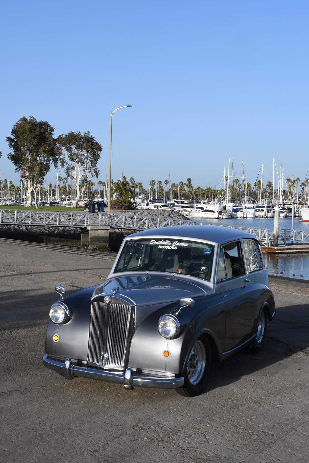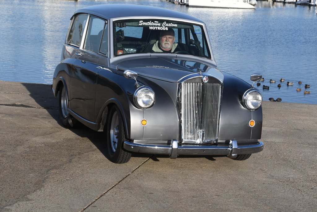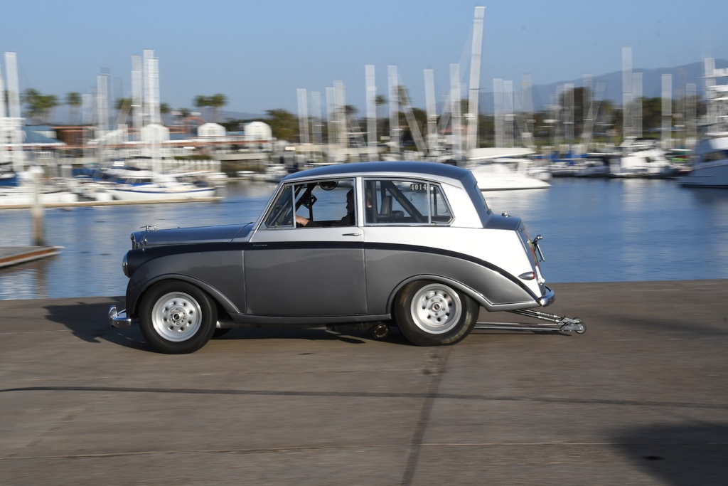Be that is may, the modified example shown here came into the life of retired police detective Sam Beatty after he chanced upon  it when looking around the famed San Diego Automotive Museum in Balboa Park a few years ago. I should point out that Sam has always had an interest in the straight-line sport – way back in 1963 when at high school he had a ’55 Ford Thunderbird that ran high twelve-second passes accompanied by terminal speeds on the standing start quarter-mile of around 109mph – and over the course of adulthood expanded his interest in automobiles to encompass an eclectic assortment of show cars as well as upmarket models from the likes of Jaguar and Rolls-Royce. “I’m a British car freak,” he said “as well as having a (penchant) for certain US marques. So when I spotted the Mayflower parked up gathering dust in the museum’s restoration shop it piqued my curiosity.” Upon making further enquiries, it transpired that the vehicle had been donated by someone who’d removed the original drivetrain and cut the crossmember in order to install a Nissan 1600cc four-cylinder engine and automatic ’box. So before purists get on their high horses, as alterations had already been undertaken by the benefactor, the plan that Sam had in mind for the already modified rarity would at least ensure the car would be returned to use rather than being ignominiously laid up in a storage area. Sam said “I tried to buy the Mayflower as I fancied the idea of converting it to a street ’n’ strip machine, something that would definitely be a novelty. It transpired that an employee of the museum had driven the car somewhere and felt that it was unsafe to be on the road to a point where he declined to make the return journey! Hence the car had been tucked away and largely ignored until I came upon it.”