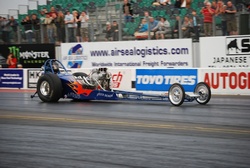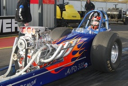 When is it going to be finished? Short answer is "When it is finished", hopefully this year sometime. Which class? Who knows, it will be legal for most classes and I'm not committing to any of them. I'll run when and where I want and that includes any track at any event even as a demo car (good fun, no hassle, low costs). Finally the rendering was done by Darren West of Power Race Graphics who turned the picture which I have had in my head for so long into what you can see now. And finally final my list of thanks, in no particular order: Frank and Scott; Parks N&P Race Cars; Duane Carr (RIP); Mark Rapp, Rapp Racing Engines; Chris Dafoe; Paul Shaw; Kevin Catling, KC Autos; Lindsey Walsh, without whom it wasn't going to happen; and Vic Hammond (RIP) for allowing me to drive his front-engined dragster in the first place. Clive Skilton and Trevor Young pictures courtesy and ©Alan Currans, The Acceleration Archive
