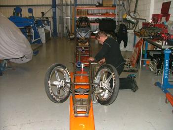 Steve Turner: The facilities are first-class, and owners Dave Bryant and Danny Bates have been really helpful giving advice and extra hands if we need them. Andy Carter: I would like to say thanks to Dave Bryant and Danny Bates for giving us the use of their workshop and facilities to complete this project. As Steve said, the facilities are first-class and with many years experience between Dave and Danny it's great to have them giving so much support. Eurodragster.com: Two cars is a lot of work, what will you be doing for crew? Steve Turner: I will be Crew Chief for both the Methanol Dragster and the Top Fuel Dragster. Cliff Gould will oversee the Top Fuel Car with Darren Gould, Pete Rivers, Jim Tucker and Marcus Humphriss. Steve Billing, Simon Bishop, Martin Wrigley, John Foster and Sarah Foster will work on the Top Methanol Dragster. Carmel Turner is Team Manager and Rob will drive both cars! Eurodragster.com: The very best of luck to you all, Steve, thanks for your time and we'll see you at Santa Pod in April. Feature ©Eurodragster.com Turner Motorsport web site Adrenaline Race and Performance web site Carter Motorsports web site Features and interviews index Back to News page Eurodragster.com aims to bring you links to all the best European Drag Racing web sites. To add your site to Eurodragster's listings, simply email links@eurodragster.com with your URL and a little information about your site and we'll do the rest. When you update your site, drop us a line at news@eurodragster.com and we'll feature your site in our "What's New" section. Eurodragster.com is a non-profit-making organisation run by a small group of Drag Racing enthusiasts for the sole purpose of promoting European Drag Racing. If you can help us to meet the modest cost of hosting this web site by advertising here, please email webmaster@eurodragster.com. We're sure you'll find our rates extremely competitive. |
