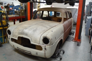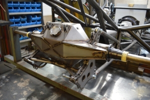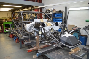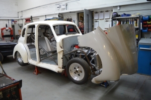 Jon Webster started building race cars in 1988 and established Webster Race Engineering in 2003 in Rushden. In 2014 he moved premises to Airfield Road, Podington, next to the entrance to Santa Pod Raceway. He works as a two man team with Jake Mechaell, and both have huge experience in building and racing drag racing machinery. We visited Jon to discuss current projects, the areas of work he does the most and his future racing plans. Click on any picture for a large image. Eurodragster.com: How did the opportunity to move to Airfield Road? Jon Webster: The lease had expired on our Rushden premises and I was looking at other options and this seemed a great opportunity. I did have six people in the business at Rushden but wanted to do the work myself rather than training managing and controlling a team, so the level of staff has reduced to two. Eurodragster.com: How has the business progressed in the new premises? Jon Webster: In these three years the sport has changed, the number of new cars has dropped and the economic climate has become more difficult. I still mainly work on drag cars but have added hill climb, hot rods and drift cars to my workload. We have worked recently on projects as diverse as an Audi built for the Pikes Peak hill climb course in the US to classic American trucks from the 1950s and 1960s. Eurodragster.com: What specialisms do you have? Jon Webster: Our main business is bespoke builds of cars and bikes to arrive at our customers' dream vehicle. When a customer brings us a project we have to assess it, adapt it and execute it to the customer's wishes. You are only as good as your last job. We have a particular specialism in Street Eliminator where we have built around 90% of the cars that have run in the class. I have recently started work on a Mustang Pro Mod and plan to make that class a specialism in future as several racers are looking to move up. Eurodragster.com: Do you have any areas you often rely on others for? Jon Webster: WRE can do most work but I avoid engine building at the workshop because of the dust in the atmosphere! We can do rear axles and automatic transmissions but depending on capacity will refer customers to Geof Hauser on axles and Andy Frost for auto gearboxes. Eurodragster.com: How do you advertise for new business? Jon Webster: Our main advertising is for the Eurodragster.com webcam, and we have a Facebook page that generates interest. Most of our business comes from people who know us at the track, or recommendations. Eurodragster.com: What projects do you have in hand at the moment? Jon Webster: There is one vehicle covered up that is secret and at a fairly early stage of build so you'll have to wait to find out about that! But there are seven other projects all at different stages of development. The newest is a Ford Falcon which is stock at the moment but we will be doing a build for it to debut at Dragstalgia. Then there is the Austin Devon. It will be a street rod with some strip use. As is common with street rods, we use the outer shell and cut away internal panels and replace with a new roll cage. The suspension and rear axle are GM products and there is a crate engine. It will be a 'turnkey' project, it is 80% complete and it came in eight weeks ago. The Escort Mark 2 (not pictured) is a drift car. We had to make the wings for the wheel arches in fabricated steel and we fabricated a cage out of steel as well. The engine is a Toyota 2JZ with a Garrett GT46 turbo, Toyota gearbox, and 9" Ford aftermarket rear axle, with custom made casing. That's the way most 9" Ford axles are done now, it's cheaper and stronger. The '86 Transam is being made into a Kinghtrider replica. The owner works for Force India F1 team and was a follower of the TV series in the '80s. Although there will be plenty of cosmetic stuff to make the car appear like the TV version, we are doing the underpinnings. There will be a LS3 525hp engine, six speed manual gearbox, independent rear suspension, wider wheels and six pot brake calipers. The car has a 'T tops' roof like the original. The Ford Zephyr Farnham Estate Mark I is very rare, as E D Abbott Limited of Farnham only made nine of this model, before expanding production for the Mark II and III. The customer looked around for one and eventually found this example at the right money. It's in pretty good condition. We are assessing it for dynamic potential and think it may be suitable for Street Eliminator. The class is getting more demanding on aerodynamics at the speeds they are capable of running at, and if a customer asks about body modifications for Street Eliminator, we do express a preference for keeping it looking stock. You can build a Pro Mod car and make it road legal, but it's not really in the spirit of the class, and many class racers sympathise with this view. Eurodragster.com: What machines do you have on site? Jon Webster: We have sheet metal forming machines that fold and cut metal and a couple of lathes. They are all we need to help the fabrication process. Eurodragster.com: Do you have any bikes you are working on? Jon Webster: We are developing a four link bike, which was my idea and Super Street Bike racer Jamie Sneddon has taken up. I got involved with Jamie over electronics and have built a good relationship with him over the years. He agreed the concept of a four link rear could work well on a Super Street Bike. It enables the front suspension forks to go back to stock geometry. On most bikes, the rake on the front is reduced so the fork is almost vertical in order to allow for a longer swing arm to keep to the 68" wheelbase. The swing arm helps enable the safer geometry. The bike has Jamie's Honda Blackbird setup and we have also done work on the turbo and frame. It will be out for testing this year. Eurodragster.com: Your new Pro Mod car, that's a new direction for you? Jon Webster: Well actually, I started off in Pro Mod as I was involved with Tim Cook between 1987 and 1990 and then wor