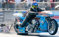 five-second Top Fuel Bike runs outside the USA. Rikard was the quickest and fastest with a 5.918/248 mph to Fil's 5.980/226. Due to problems with