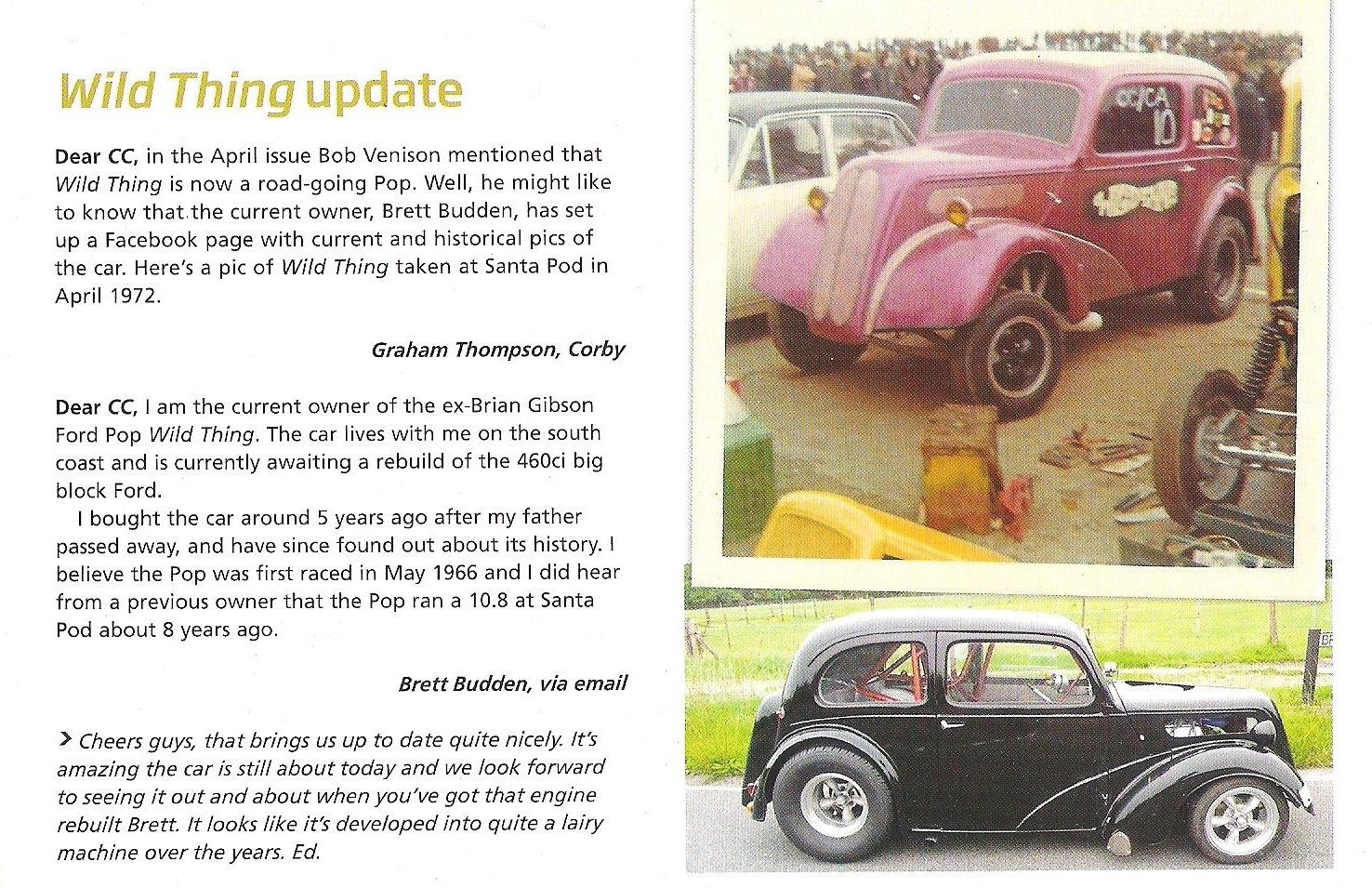 Brian and Bob got interested in hot rods and drag racing in the early 1960s and were inspired by the 1964 Dragfest to build a gasser. Learning as they went, the Jaguar-engined Wild Thing Ford Pop ran at Santa Pod in 1966 and 1967.