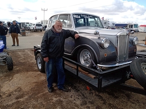 Sam Beatty has an even rarer Triumph Mayflower of Sam Beatty (photo: Herb Andrews). This car was built between 1949 and 1953 of which only a handful of the 35,000 built were imported into the US. Designed as an upmarket small car, one description of it was "Honey, I shrunk the Rolls". A few years ago, Sam took his example and keeping it as stock looking as possible, fitted a Ford Windsor 351 stroked to 427ci. He mainly uses it on the street but takes it to nostalgia meetings such as the March Meet (where he ran it in the Hot Rod category), and the Barona Dragstrip 1/8 ,mile Antique Drags, held in an Indian reservation.