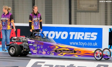 On paper, Danny's was the quickest car with two of the others running nitro for the first time, however at Blackbushe on 25th-26th September there was torrential rain and as Drag Racing Magazine put it, "The spectators were continually given the impression that the American drivers had scarcely ever seen rain, let alone driven in it". The reluctant drivers finally decided to run in the rain and Danny was described as "like a packet of itching powder, fretting to make a run whatever the others wanted to do". Danny's times were 9.62/120 and 9.76/150.