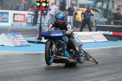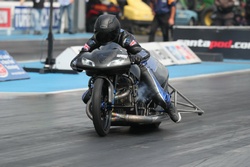 Saturday morning and back to the left lane and this time the Capri turned right again after about two hundred feet and then the back snaked a bit so again I lifted and coasted. Nic Williams had a look and we decided to take the rear shocks up a couple of clicks stiffer and to lower the tyre pressures slightly. Nic said he would try to watch this time. For the third run in a row we somehow lined up against James Oliver but Nic still came over to watch the run. The Capri hooked up this time, running a 10.52. Ollie came flying past me and I could see he couldn't stop, he flew into the field at a hell of a rate and in a huge cloud of dust. I turned off the track as quickly as I could so that the safety crew could give chase. After a few minutes I found out that everyone at the start line thought that it was me who had had the problem after my two previous runs. Fortunately Ollie and his car were fine and we seemed to have a car with which I could race. My first round of eliminations was against Andy Thetford. I pulled a 0.07 light and lifted at the top end, taking the win light with a 10.70 on a 10.50 dial-in. Round 2 on Sunday morning was against Bob Molden. All the years we've both been racing and I don't think we've ever managed to race each other. I dialled 10.50 again but was too eager on the start and went red by 0.01 and ran 10.52. I was gutted but pleased that we were heading in the right direction. It was good to be back in the Capri again and with reaction times of 0.07, 0.05, 0.02, -0.02, 0.07 and -0.01 there's still life in the old man yet! Laura will be back behind the wheel at the Springspeed Nationals. Thanks to Nic and to everyone else who offered advice on set-up changes. Swift snippets. 28th April: We were sorry to hear from Geoff Stilwell of the death of Gloria Gibbs, mum to Cindy, Debbie and Stephanie and wonderful wife to Steve Gibbs, who has passed away after a battle with illness. "On behalf of my family, all UK racers and the British Drag Racing Hall of Fame we send our condolences to the Gibbs family", says Geoff. Multiple ACU UK Top Fuel Bike Champion and record holder Steve Woollatt has announced a sponsorship deal with GSF Car Parts who supply parts, accessories, batteries, tools and oils in their large chain of stores and also on-line. "It's great to be associated with such a big company", says Steve.