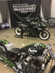 This season may be Kristin's last, but the fifty five-year-old lady from the redneck hillbilly district of Toten in Norway is keen to go out with a bang and is aiming for big numbers this year. With the support of her trustd mechanic AK Nettum and PMM she should surely be able to do it. "We are racing at all of the National and Nordic races this year which means Gardermoen, Tierp and the new track in Finland", says Polly. "The goal is also to run Kristin at the European Finals at Santa Pod Raceway in September, but this needs some work. We might give RF Motorsport a call and ask for a favour on this front!"