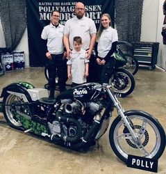 All of team members will be from Norway this year, with three racers in drag racing and two in motocross: Polly Magnussen: Super Comp Bike/Top Gas Bike Kristin Hegre: Top Fuel Bike Lea Nadine: ET Street Bike Tian Magnussen Dachert and Christina Mile: Motocross Team owner Polly Magnussen, who has been a part of the sport for some years, is racing on a US-built Top Gas Bike this season this year as well as managing the team. The latest racer to join the trio is a young Norwegian newbie Lea Nadine, who will make her licencing passes in May to become a ET Street Bike racer.