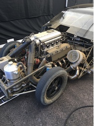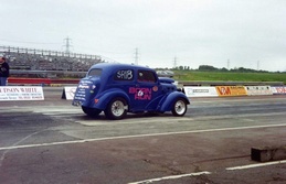 Onto the first round of Pro ET qualifying on Friday and I'll be honest and say that I was very apprehensive thinking that I'd not get it below ten seconds, but again the current set-up was outperforming everything which we and most other people thought possible. The first qualifying run was a 9.94! Words cannot even start to express how ecstatic we are! Our plan now is to continue to run in Pro ET and to gain more experience with the set-up. It turns out that we're quick enough for Super Gas - we used to watch that class in awe back in the days of Frankie Mason, never for one second dreaming we could be quick enough - but currently we're only tagged for 10.00 so a new cage is required. We'd love to push it in competition to see how far into the nines we can get it. This will have to wait until further funds allow so if there are any chassis/cage builders who would like to get involved we'd love to hear from you... those big steel doors have room for a logo!
