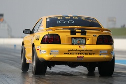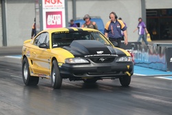 The win light in our lane gave a brief moment of euphoria, quickly followed by the realisation that the parachutes weren't pulling much speed off. It seems that, once again, we have a car with a dead spot and the chutes failed to blossom. Carbon brakes are great but they were not great enough to stop the Firebird going a fair way into the field at the end of the track. Damage was limited largely to bodywork which good friend Bryan Whitfield at Roberts Motor Bodies in Sheffield will undoubtedly be able to address. It would have been more extensive, but for the extraordinarily sympathetic manner which the Santa Pod Safety Safari adopted to extract the car from the field. They were so careful that it was just a matter of a clean-up and some running cosmetic repairs which enabled us to make the semi-final against number one qualifier Kev Slyfield. We were in the same lane for the semi-final, and although our car ran marginally quicker we were no match for Kev, who ended a worthy winner of the event. Huge thanks to our partners for 2019, without whom our achievements so far would not have happened: USAutomotive, BUA Motorsports, Roberts Motor Bodies, Tony Thacker and Friends and long-time friend Lawrie Gatehouse. See you at the Main Event! From sixteens to Super Gas. 26th April: UK Pro ET racer Sara Unsworth says that had you told her and husband Steve ten years ago that their Mustang would be in Super Gas territory they would never have believed you, but that is exactly what happened at the Festival of Power: We started back in 2007 with Steve racing in Sportsman ET, running sixteen seconds and chipping it away to the twelves. After a drunken conversation in 2010 Steve encouraged me to enter Sportsman ET. A few more modifications, a rod through the block, damaged pistons, broken springs, ECU issues, two engines and two gearboxes later and we made Pro ET, running elevens before finally reaching high tens and Super Street. Who'd have thought our little stick-shift Mustang would be running in the tens, you have no idea how wowed we were. Healthy marital competition and the excuse to give each other engine parts for birthdays and Christmas (better than diamonds and, besides, he wraps them in girly paper for me) has resulted in Steve becoming accomplished within the SN95 modular engine world. It's not been trouble free, trashed gearboxes and damaged internals have made it an uphill battle to finally prove that our little 2v 281 ci engine was capable of big things, something we always knew. It was just a case of getting others to realise! Yes we're manual, which adds to the challenge, apparently it's not the way to be competitive? but two 10.900 tickets in the same meeting say different. It's a steep learning curve now that we're running with the big boys, dare we say tongue-in-cheek that it takes more skill to drive a stick? Following an self-enforced eighteen-month sabbatical the team attended a Run What You Brung back in March, at which we had an indication that the new set-up was going to make 2019 interesting. Fast forward to last Thursday's Pro Peak Performance Day, and after a couple of mid ten-second runs it seemed that the new set-up and the driver were coming together, with a 10.03 to the team's surprise! Everyone was over the moon: we'd reached the low tens without really trying and still with slow shifts.