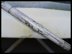 On our last run, made to back up the record, we suffered a series of issues which led to some pretty major damage. What we did not know was that the car had caught fire and in fact the inlet manifold between the supercharger and the engine block had cracked and then the fuel had caught fire burning a hole where into which you could put three or four fingers. So, with the fuel burning it made the mixture go weak on that cylinder. The piston got very hot and seized in the cylinder causing the con rod to snap and then try to escape through the wall of the block. The motor had also developed an oil leak from somewhere which had also caught fire. At the same time again what we did not know was that with all the extra horsepower we had with this motor it had actually broken off at least five of the pinion teeth. To coin a phrase, we were extremely lucky. The repercussions of the fire were pretty serious in that the fire had been quite intense so not only had it destroyed magnesium inlet manifold, but it had melted the secondary parachute cable, the parachute packing and the transmission blanket. All this was going on behind me and I had no idea at all the car had been on fire. But the point was we got the record.