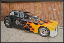 30th April: The UK's Grabham and Carter Nostalgia Drag Racing Team are excited to reveal the new-look Freddy's Revenge: After copious amounts of hard work the team are pleased to announce that we will be running the Freddy II Austin A35 Nostalgia Funny Car body this season. We had planned to début the car at Dakota Raceway last Saturday, but in time-honored tradition we are still far from race ready.