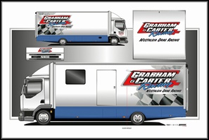 In parallel with the work on the car, we commissioned Craig Dixon of Altered Tees Apparel to produce artwork for both the Topolino and the A35 Funny Car, and we are pleased to offer a range of apparel and merchandise for sale, featuring both artworks. Dye sublimation is handled in-house, whilst DTG printing is contracted to Craig. Darren West of Power Race Graphics has produced a design for our new 7.5-tonne transporter, which we are currently readying for the Nostalgia Nationals. Hopefully in the next few days we will find the time to update our web site and our Facebook page; we will let you know when. The Rat works its Magic.