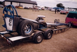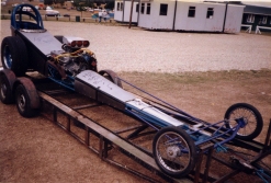 Drag racing historian Nick Pettitt added: The slingshot lived on after Steve had it with various owners. It was at Blackbushe 1984 when run by Mary Grace and in 1995 on a trailer with a Rover V8 lump fitted (see above photos). It would be nice to think it's still in a garage somewhere waiting to be restored back to how it was...