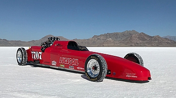 Nitro Revival Eurodragster.com sponsor Geoff Stilwell has made progress towards his dream of hitting 300mph at Bonneville during Speed Week. We reported on 15th April that Lucas Oil Products had renewed their sponsorship of Geoff's 7707 Lucas Oil Landspeed Team. Lucas have now added to their support by supplying a special oil that can withstand the unique challenge of running a nitro fuelled Hemi continuously for a significantly longer period than it would on a drag strip.