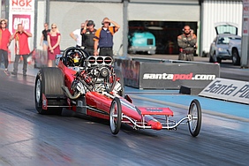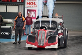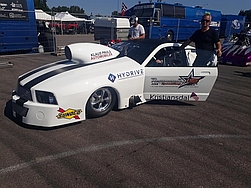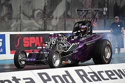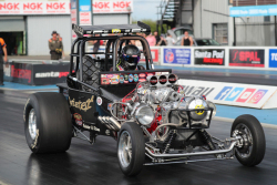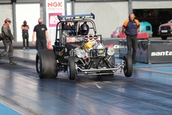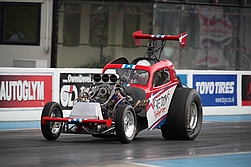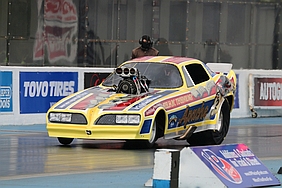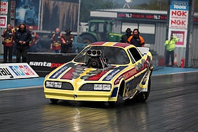 Nostalgia Funny Car racer Tim Garlick (pictured right) brought his Pontiac Firebird out for a couple of test runs. Tuner Rob Loaring said "the new clutch looks to be a good step forward. We made two short runs, the second on the throttle to around 400ft. It was a bit of a slug to 60' but the 330' was only 8/100's off Tim's best". The team's next outing will be at the STP Springspeed Nationals, where they will be joined by the completely rebuilt Venom of Tony Betts and Chi Town Hustler of Paul Harris.