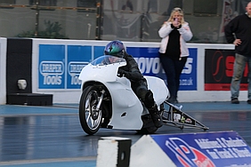 The Top Fuel Bike of Phil Baimbridge was again piloted by Al Smith and you can see Phil's comprehensive write up with video at the PBR TFB Facebook page. The pair of launches resulted in a broken drive belt and damaged blower belt on the second attempt, following a 1.034s to 60ft on the first.