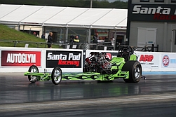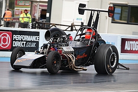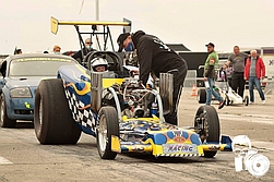 We reviewed Outlaw Anglia yesterday. Supercharged Outlaws, sponsored by Good Vibrations Motorsports, will have a field of 16 cars, with Roy Wilding (below left) in his Chariots of Fire slingshot with many updates including a new engine and supercharger, Andy 'Fadster' Hadfield in Twister with a new 600ci engine, David McCallan with a rebuilt truck with a new chassis and driveline from Steve and Babs Saunders' Hi-Speed Gas car, Steve Wright with his unique AMC Pacer with new engine, and Doug Bond in son Joe's slingshot (below right), returning to the cockpit at the tender age of 71, having last raced in his 20+ year career in 2003 with a best of 5.94. Also racing will be Andy Park, Rob Grabham, Paul Watts, Gary Parkes, Luke Watts, Aaron Windridge, Mick Checkett, Paul Dale, Keith Freeman, Simon Boot and Des Taylor.