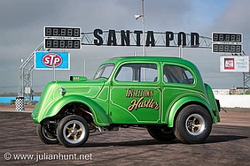"The car is a altered Model T, now known as Sonic Attack, originally built in 1978 by Stormin' Norm Wheeldon, and has been previously named Quiet Riot, Dazed & Confused and Plumb Tuckered. The car was last run by Lee Hartnell from the Wild Bunch many years ago and has changed hands quite a few times since then.