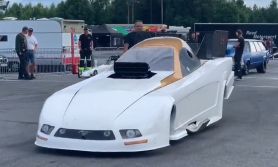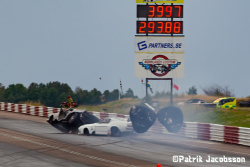 In Pro Xtreme, there were many familiar names in the fourteen car ladder. 2019 FIA Pro Modified champion Jan Ericsson qualified no.1 with a 3.8511 from the 3.8525 of Mats Stefansson. Although Mattias Wulcan was in no.3 qualifying postion with a 3.8543, a 0.9225 60ft time (best of all) indicated he was able to launch hard. The second round of eliminations had a scary looking 180mph top end crash between the Mustangs of Mikael Lindahl and Michael Nord (see picture) from which both racers emerged a-ok.