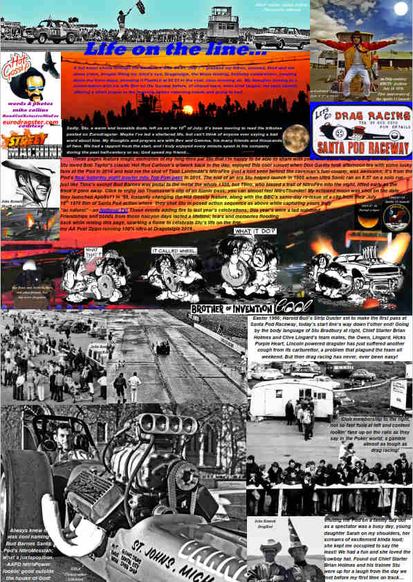 Mike says: 'Sadly, Stu, a warm and loveable dude, left us on the 10th of July; it’s been moving to read the tributes posted on Eurodragster. Maybe I’ve led a sheltered life, but can’t think of anyone ever saying a bad word about him. My thoughts and prayers are with Bev and Genna, his many friends and thousands of fans. We had a rapport from the start, and I truly enjoyed every minute spent in his company during the past half-century or so; God speed my friend'.