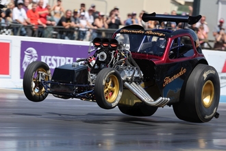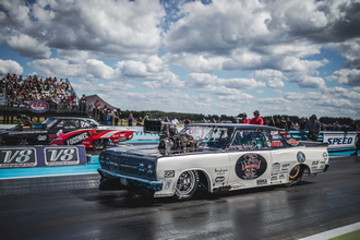 Although there were showers on both Saturday and Sunday, the Santa Pod track crew worked tirelessly to ensure that the track was dried quickly and racing returned as soon as possible. A huge field of 300 vehicles competed, with 16 overseas competitors showing that competing in the UK is once again achievable.