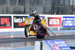 Among other quick classes, several nitro burning and funny bikes ran together as a Top Fuel Bike class. The qualifying positions, with terminal speeds in kph made by each, were: